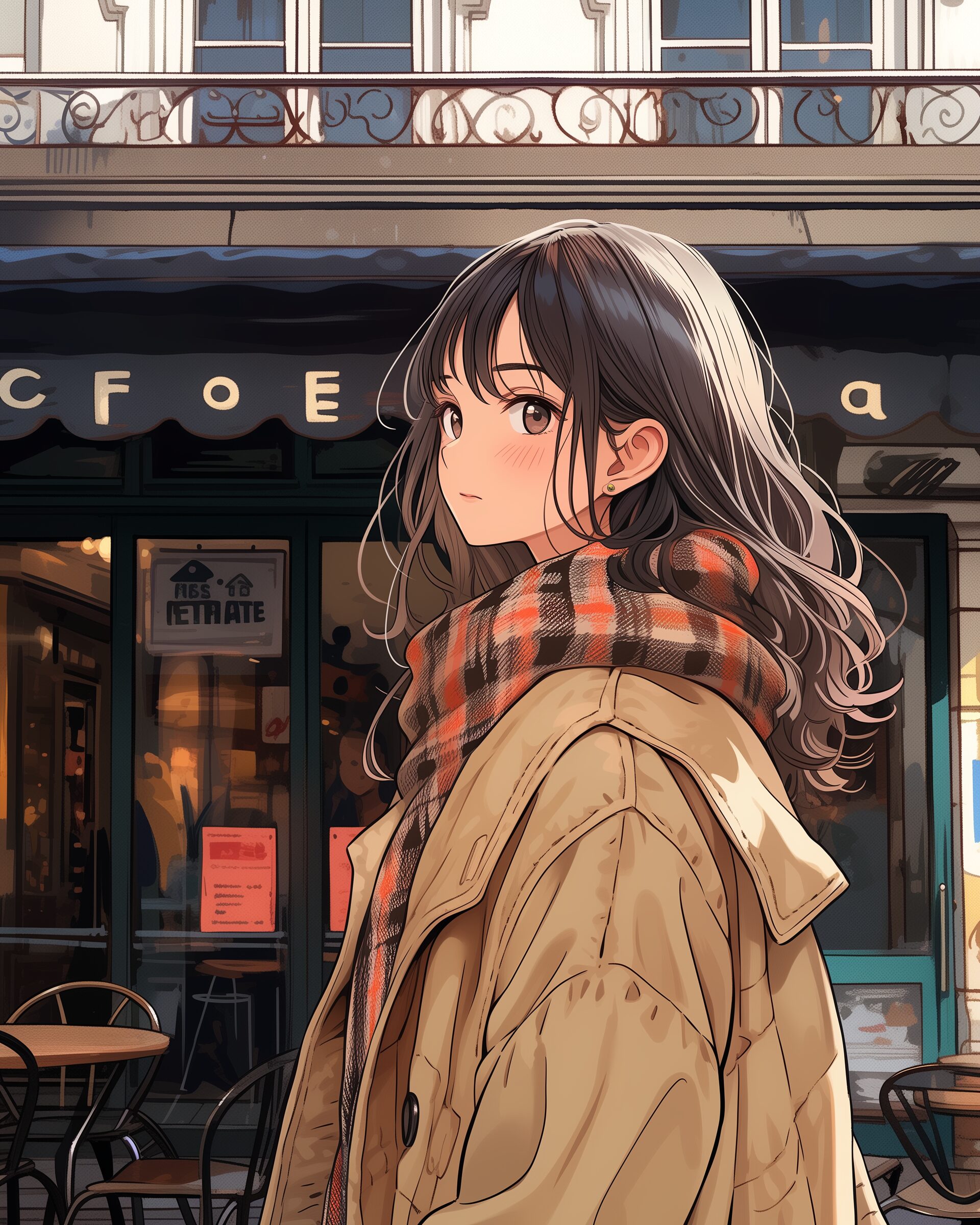 検索タグ:イラスト、ファッション、キャラクター、女性、女、女の子、女子、女の人、アニメ、漫画、マンガ、美人、美女、若い、かわいい、可愛い、カワイイ、人物、顔、美しい、綺麗、きれい、キレイ、アート、お洒落、挿絵、インスタ、Instagram、AI生成画像、fashion、コピースペース、おしゃれ、オシャレ、秋、秋服、冬服、コート、チェック柄