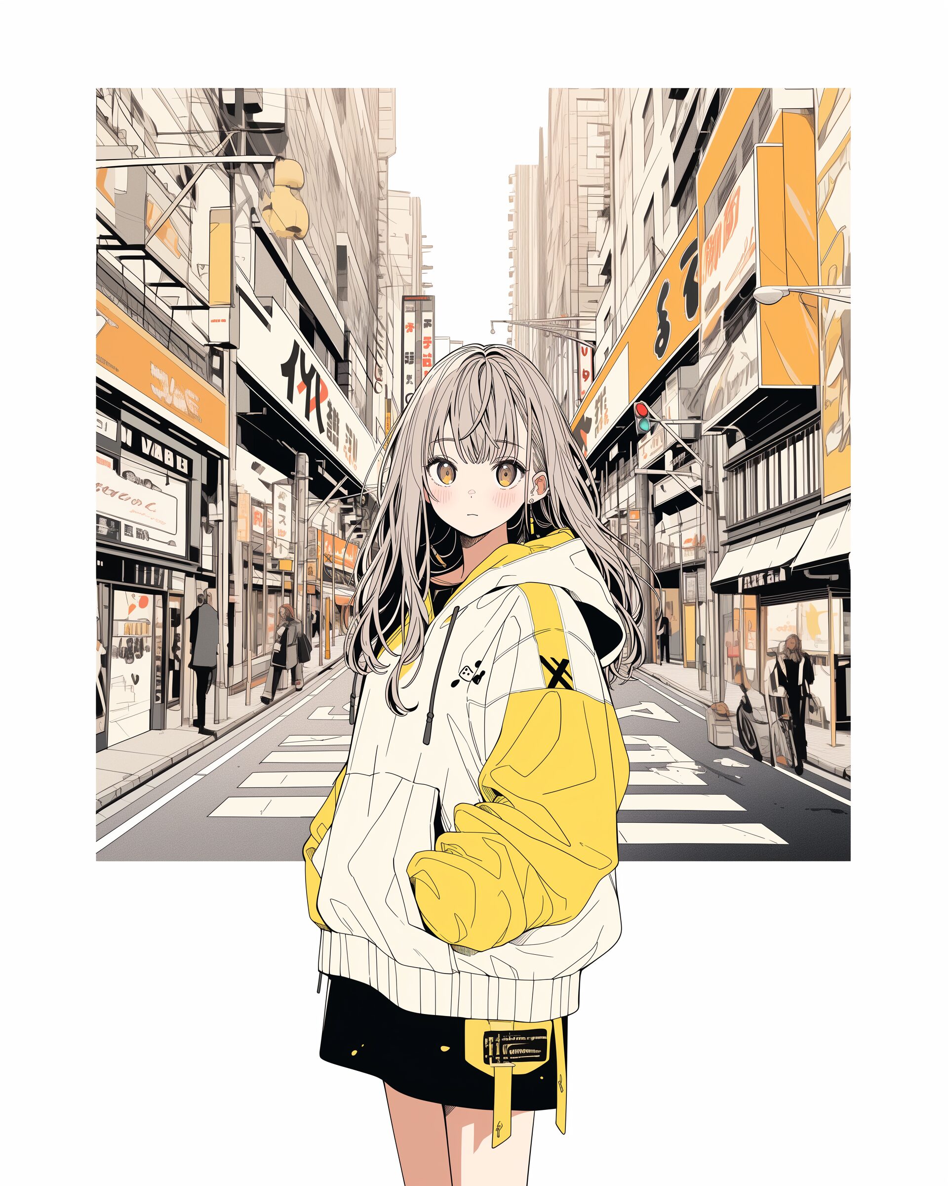 検索タグ:イラスト、ファッション、キャラクター、女性、女、女の子、女子、女の人、アニメ、漫画、マンガ、美人、美女、若い、かわいい、可愛い、カワイイ、人物、顔、美しい、綺麗、きれい、キレイ、アート、お洒落、女子高生、JK、挿絵、夏、春、パステルカラー、トップス、春服、hoodie、パーカー、パーカー女子、ベージュ、beige、 yellow、黄色、イエロー