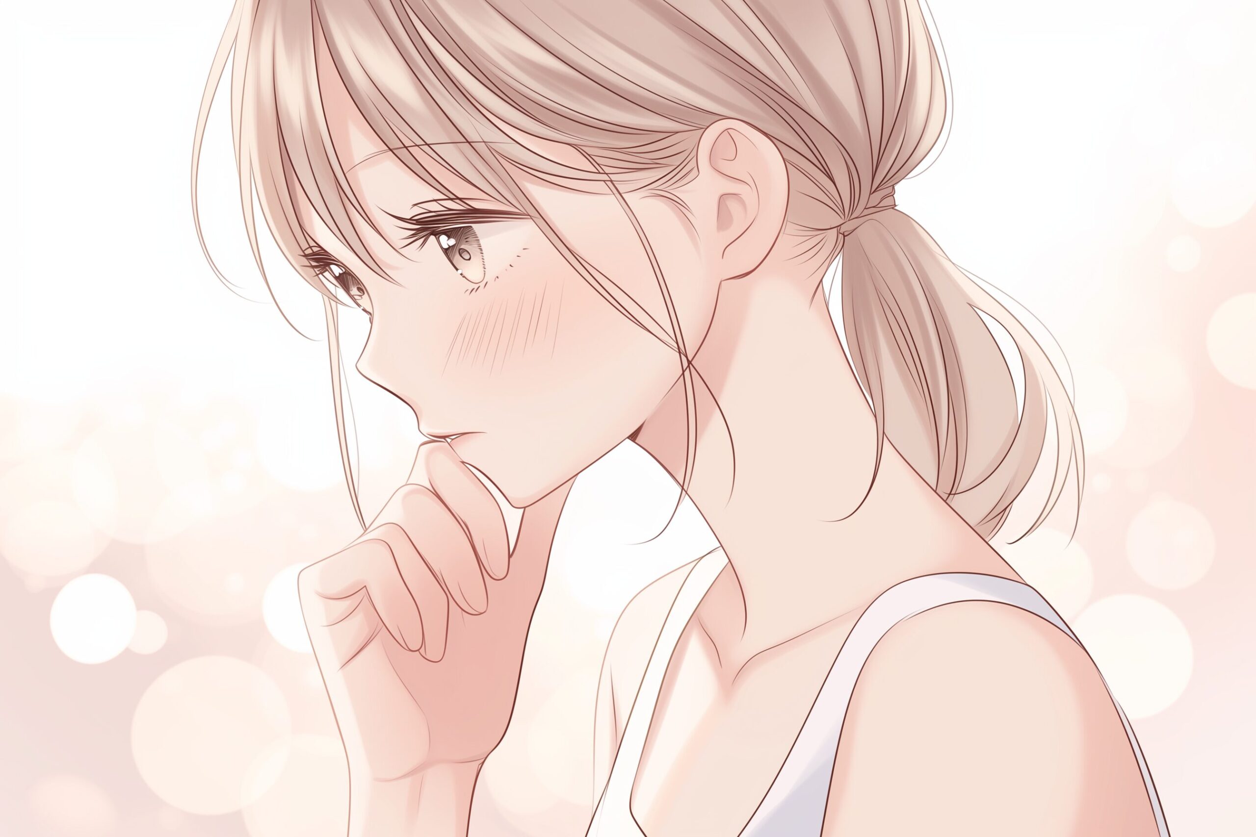 検索タグ:イラスト、ファッション、キャラクター、女性、女、女の子、女子、女の人、アニメ、漫画、マンガ、美人、美女、若い、かわいい、可愛い、カワイイ、人物、顔、美しい、綺麗、きれい、キレイ、アート、お洒落、挿絵、インスタ、Instagram、AI生成画像、fashion、コピースペース、オシャレ、おしゃれ、お洒落、横顔、考える