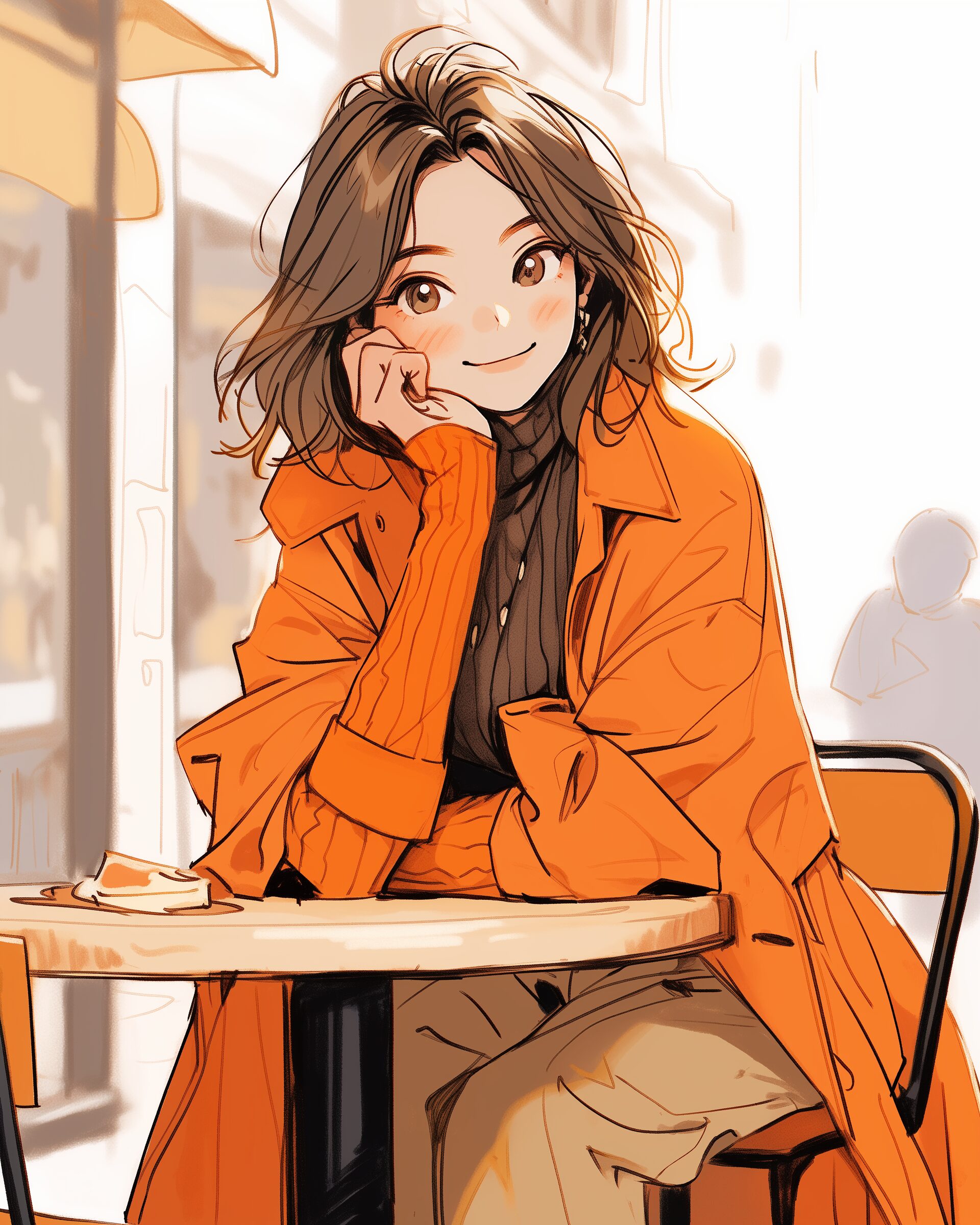 検索タグ:イラスト、ファッション、キャラクター、女性、女、女の子、女子、女の人、アニメ、漫画、マンガ、美人、美女、若い、かわいい、可愛い、カワイイ、萌え、萌え系、萌えキャラ、人物、顔、美しい、綺麗、きれい、キレイ、芸術、アート、顔、冬服、冬、洋服、お洒落、おしゃれ、オシャレ、コーデ、コーディネート、パーカー、パーカー女子、オレンジ、コート