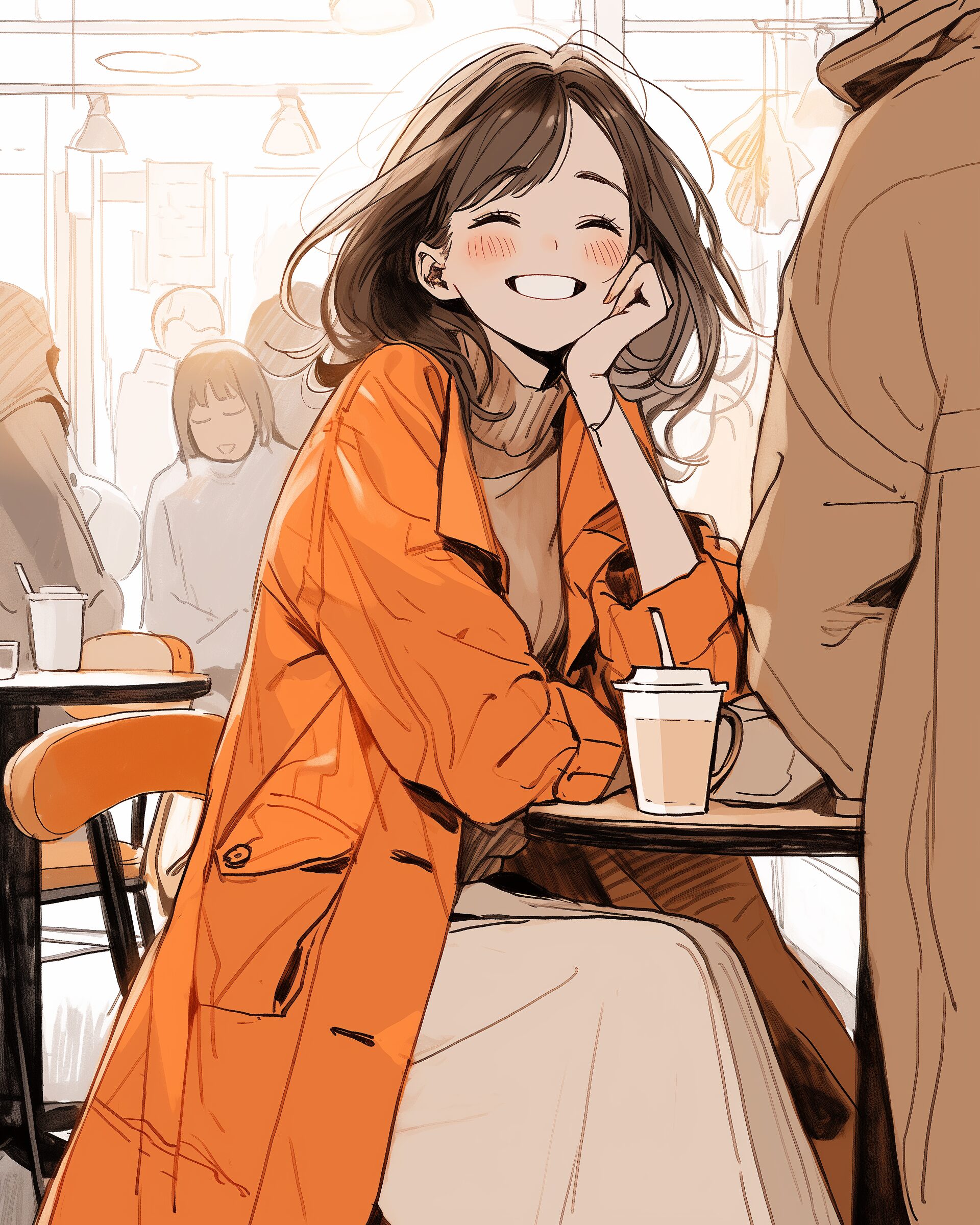 検索タグ:イラスト、ファッション、キャラクター、女性、女、女の子、女子、女の人、アニメ、漫画、マンガ、美人、美女、若い、かわいい、可愛い、カワイイ、萌え、萌え系、萌えキャラ、人物、顔、美しい、綺麗、きれい、キレイ、芸術、アート、顔、AI生成画像、冬服、冬、洋服、お洒落、おしゃれ、オシャレ、コーデ、コーディネート、パーカー、パーカー女子、オレンジ、コート