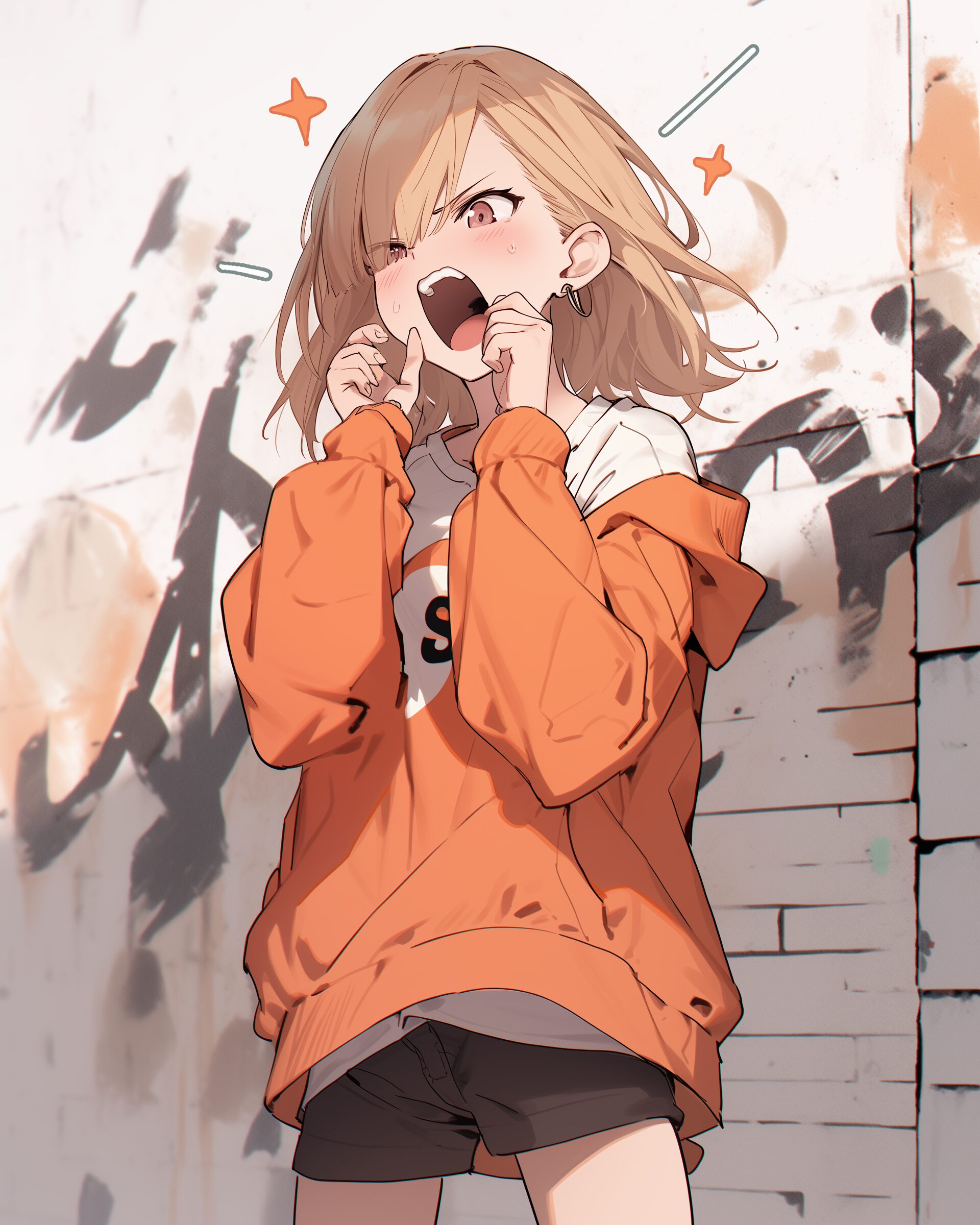 検索タグ:イラスト、ファッション、キャラクター、女性、女、女の子、女子、女の人、アニメ、漫画、マンガ、美人、美女、若い、かわいい、可愛い、カワイイ、人物、顔、美しい、綺麗、きれい、キレイ、アート、お洒落、女子高生、JK、挿絵、夏、春、パステルカラー、春服、インスタ、Instagram、オレンジ、orange、パーカー女子、叫ぶ、声
