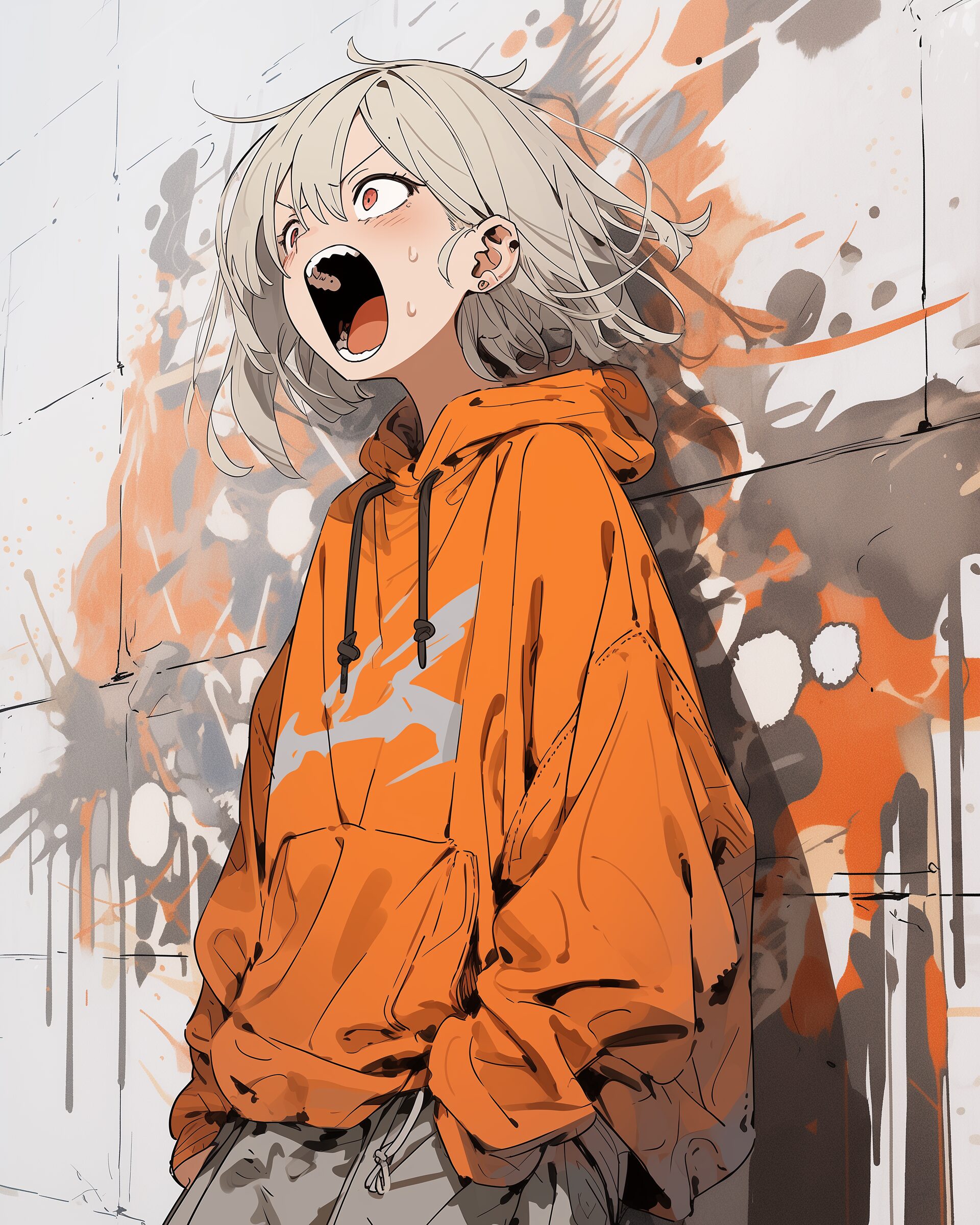 検索タグ:イラスト、ファッション、キャラクター、女性、女、女の子、女子、女の人、アニメ、漫画、マンガ、美人、美女、若い、かわいい、可愛い、カワイイ、人物、顔、美しい、綺麗、きれい、キレイ、アート、お洒落、女子高生、JK、挿絵、夏、春、パステルカラー、春服、インスタ、Instagram、オレンジ、orange、パーカー女子、叫ぶ、声