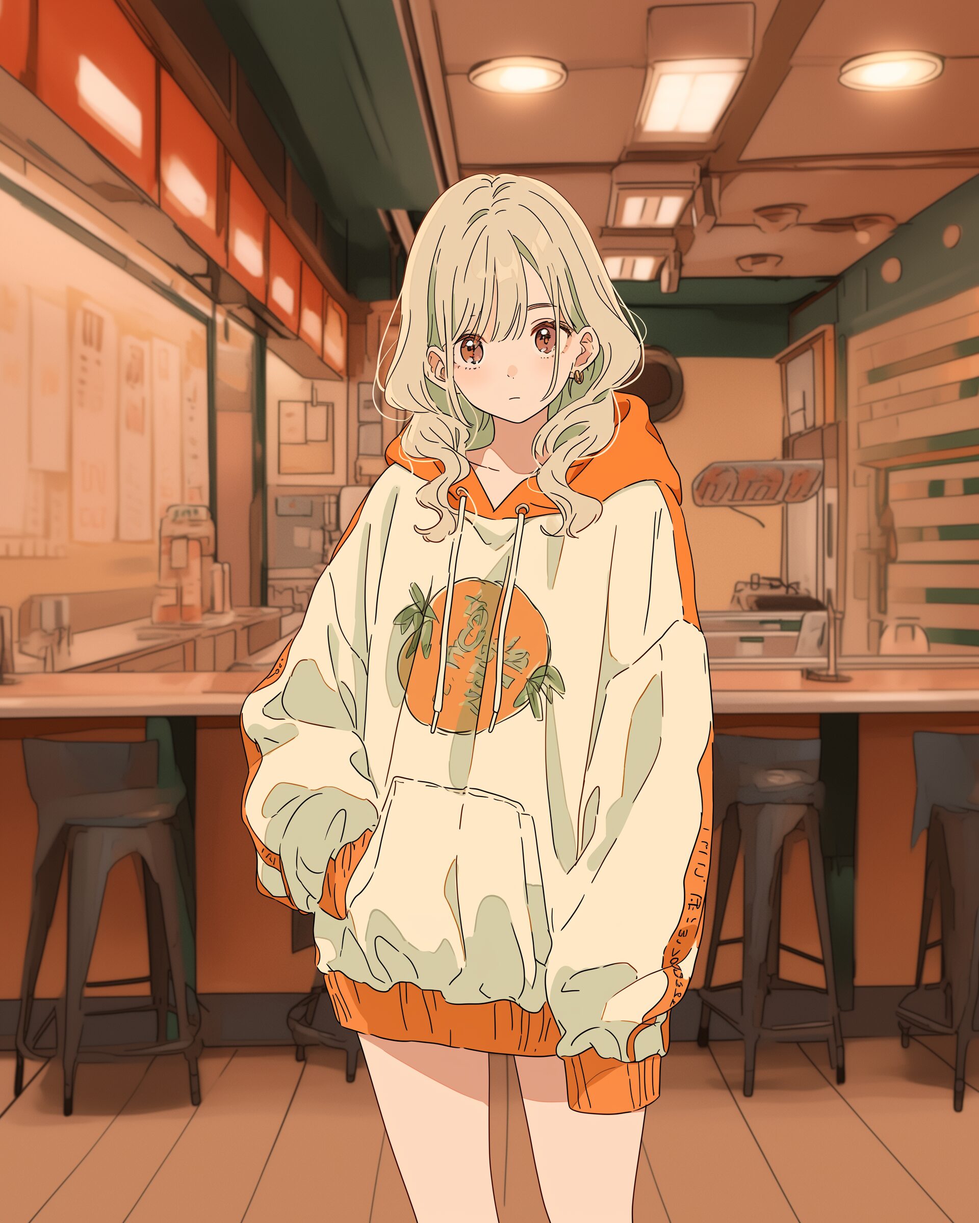 検索タグ:イラスト、ファッション、キャラクター、女性、女、女の子、女子、女の人、アニメ、漫画、マンガ、美人、美女、若い、かわいい、可愛い、カワイイ、人物、顔、美しい、綺麗、きれい、キレイ、アート、お洒落、女子高生、JK、挿絵、夏、春、パステルカラー、トップス、春服、hoodie、パーカー、パーカー女子、待ち受け画像、春服、オレンジ、緑、グリーン、Green、orange
