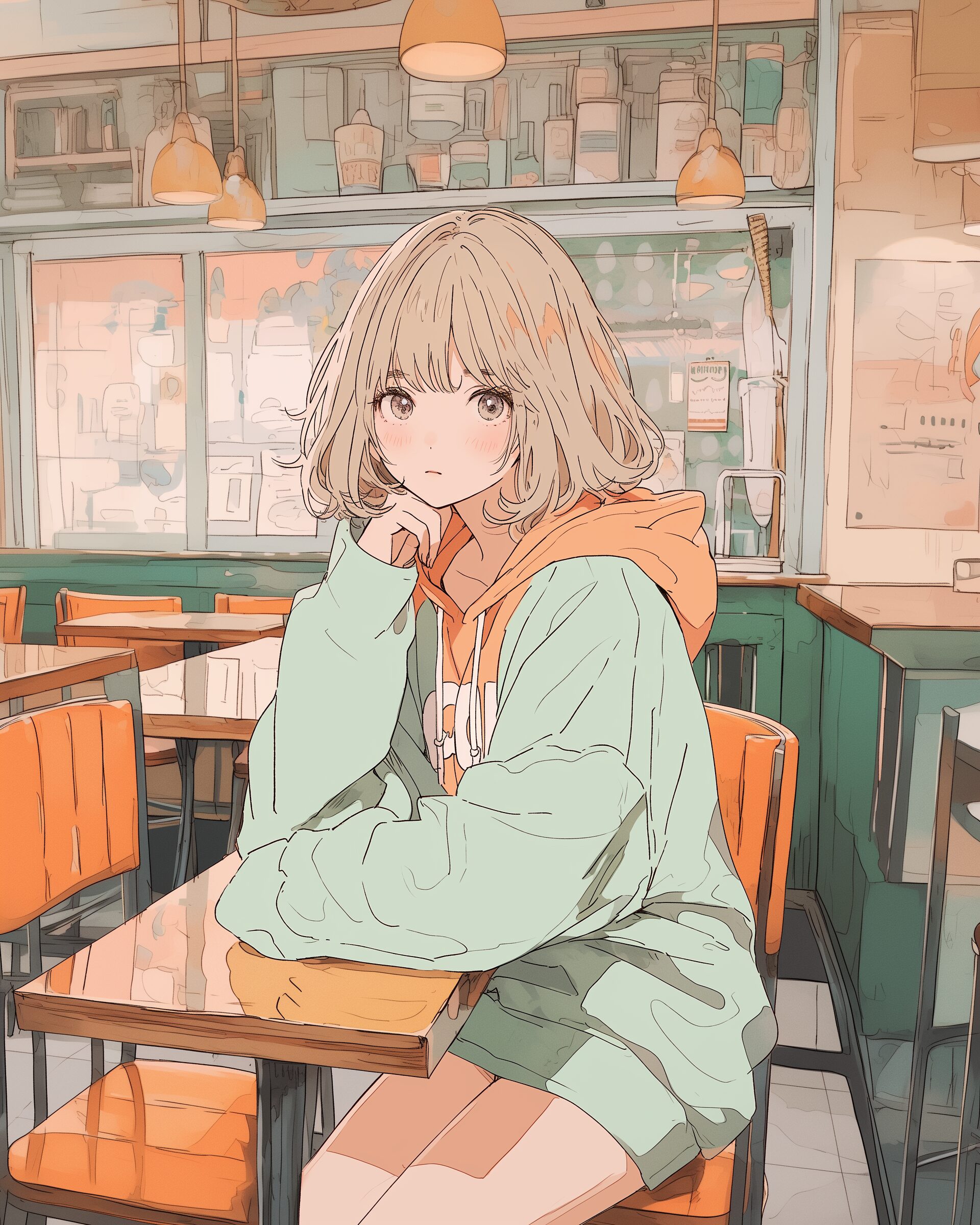 検索タグ:イラスト、ファッション、キャラクター、女性、女、女の子、女子、女の人、アニメ、漫画、マンガ、美人、美女、若い、かわいい、可愛い、カワイイ、人物、顔、美しい、綺麗、きれい、キレイ、アート、お洒落、女子高生、JK、挿絵、夏、春、パステルカラー、トップス、春服、hoodie、パーカー、パーカー女子、待ち受け画像、春服、オレンジ、緑、グリーン、Green、orange