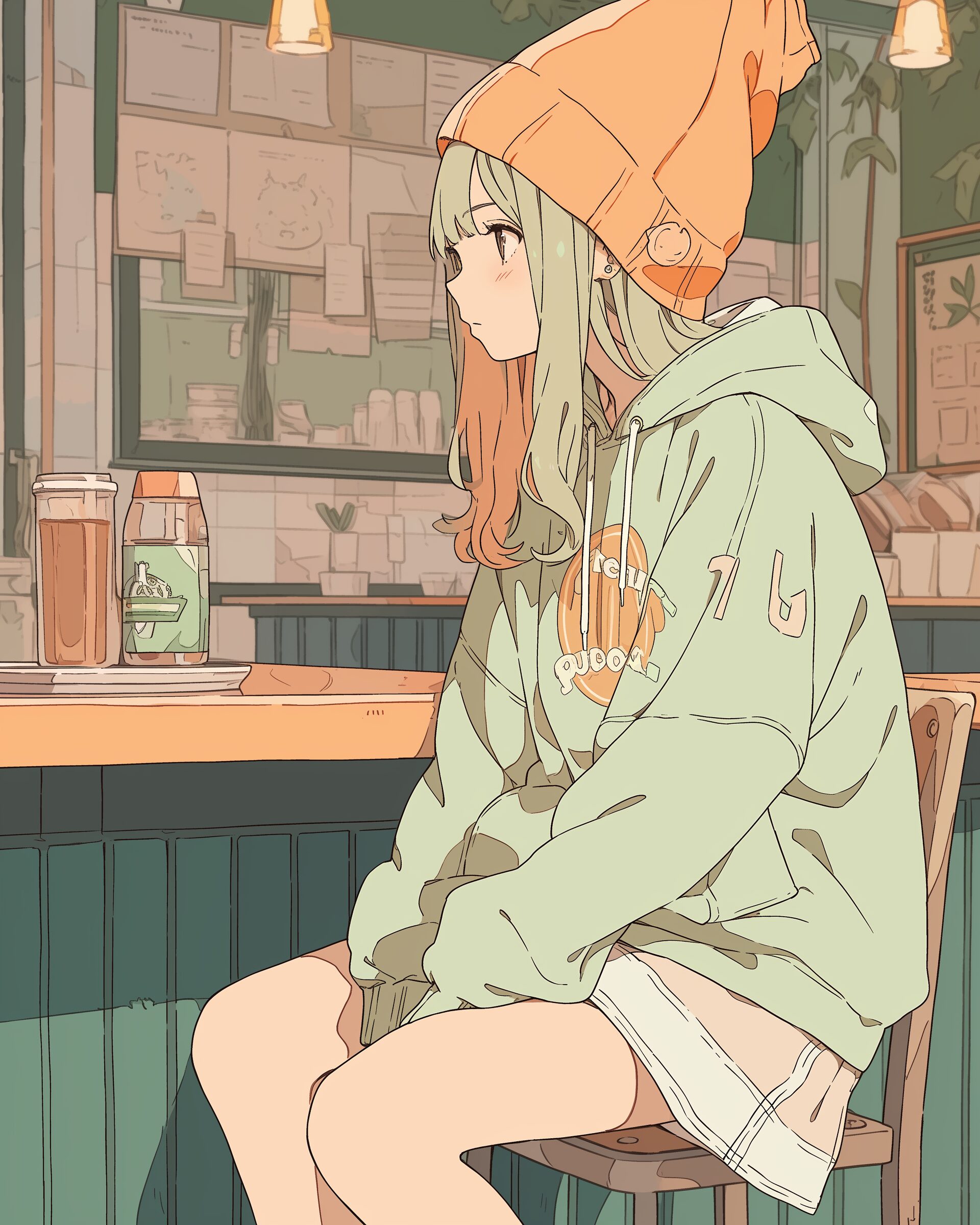 検索タグ:イラスト、ファッション、キャラクター、女性、女、女の子、女子、女の人、アニメ、漫画、マンガ、美人、美女、若い、かわいい、可愛い、カワイイ、人物、顔、美しい、綺麗、きれい、キレイ、アート、お洒落、女子高生、JK、挿絵、夏、春、パステルカラー、トップス、春服、hoodie、パーカー、パーカー女子、待ち受け画像、春服、オレンジ、緑、グリーン、Green、orange
