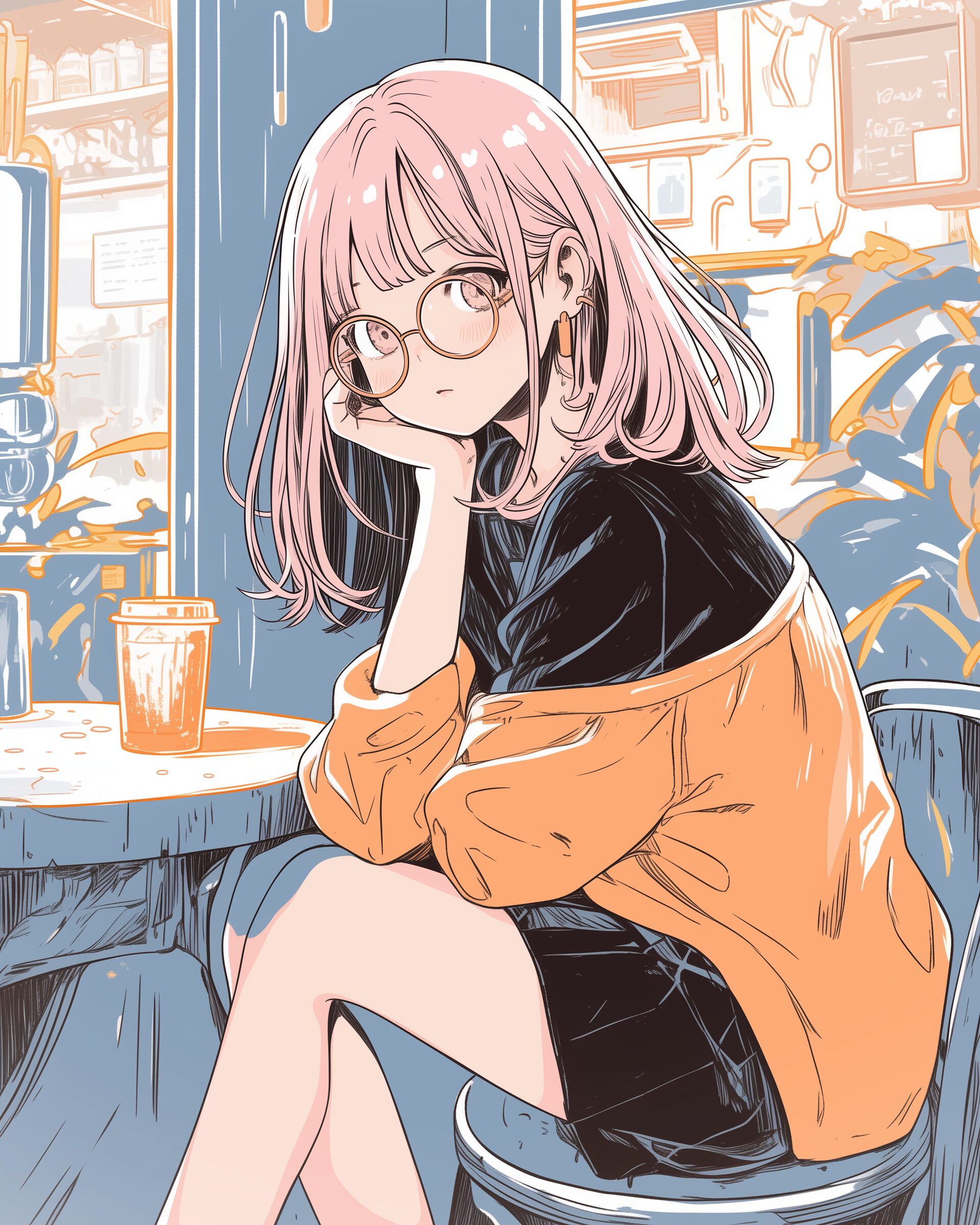 検索タグ:イラスト、ファッション、キャラクター、女性、女、女の子、女子、女の人、アニメ、漫画、マンガ、美人、美女、若い、かわいい、可愛い、カワイイ、人物、顔、美しい、綺麗、きれい、キレイ、アート、お洒落、女子高生、JK、挿絵、夏、春、パステルカラー、春服、インスタ、Instagram、夏、夏服、summer、fashion、オレンジ、orange、ブルー、Blue、メガネ、眼鏡、めがね、メガネ女子