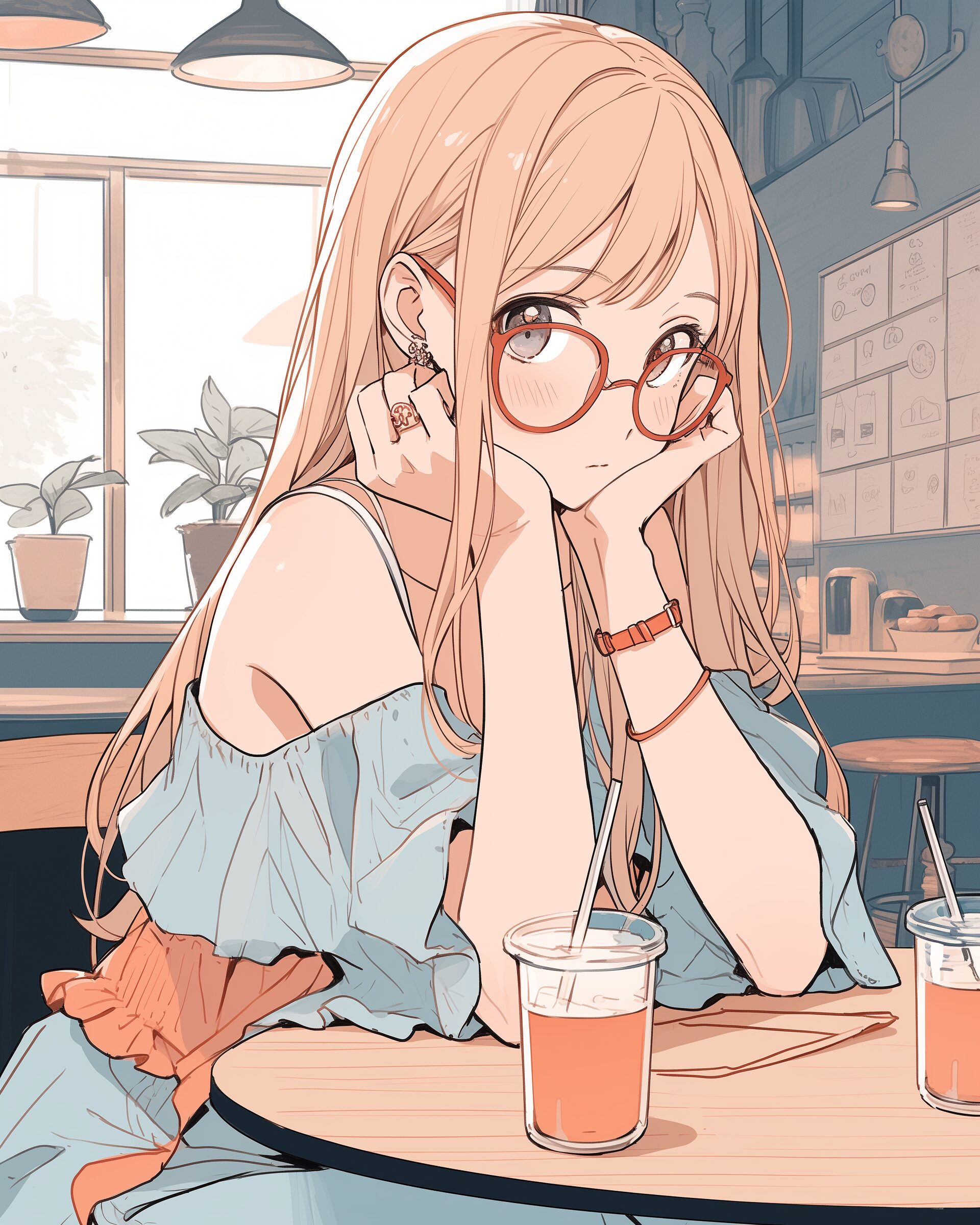 検索タグ:イラスト、ファッション、キャラクター、女性、女、女の子、女子、女の人、アニメ、漫画、マンガ、美人、美女、若い、かわいい、可愛い、カワイイ、人物、顔、美しい、綺麗、きれい、キレイ、アート、お洒落、女子高生、JK、挿絵、夏、春、パステルカラー、春服、インスタ、Instagram、夏、夏服、summer、fashion、オレンジ、orange、ブルー、Blue、メガネ、眼鏡、めがね、メガネ女子