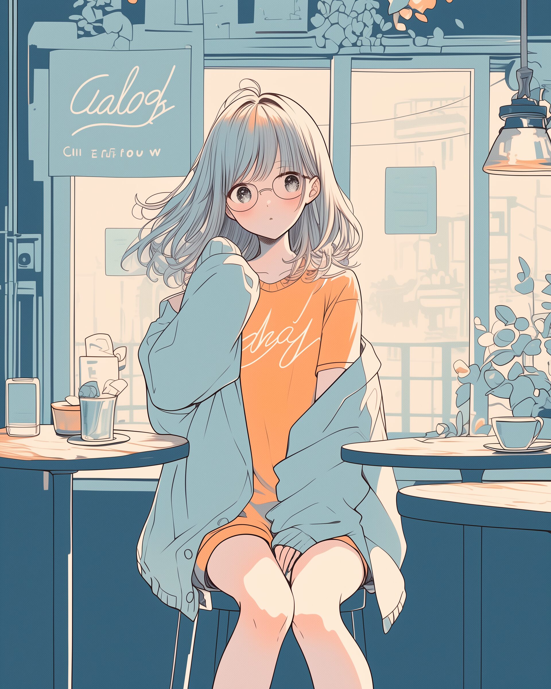 検索タグ:イラスト、ファッション、キャラクター、女性、女、女の子、女子、女の人、アニメ、漫画、マンガ、美人、美女、若い、かわいい、可愛い、カワイイ、人物、顔、美しい、綺麗、きれい、キレイ、アート、お洒落、女子高生、JK、挿絵、夏、春、パステルカラー、春服、インスタ、Instagram、夏、夏服、summer、fashion、オレンジ、orange、ブルー、Blue、メガネ、眼鏡、めがね、メガネ女子