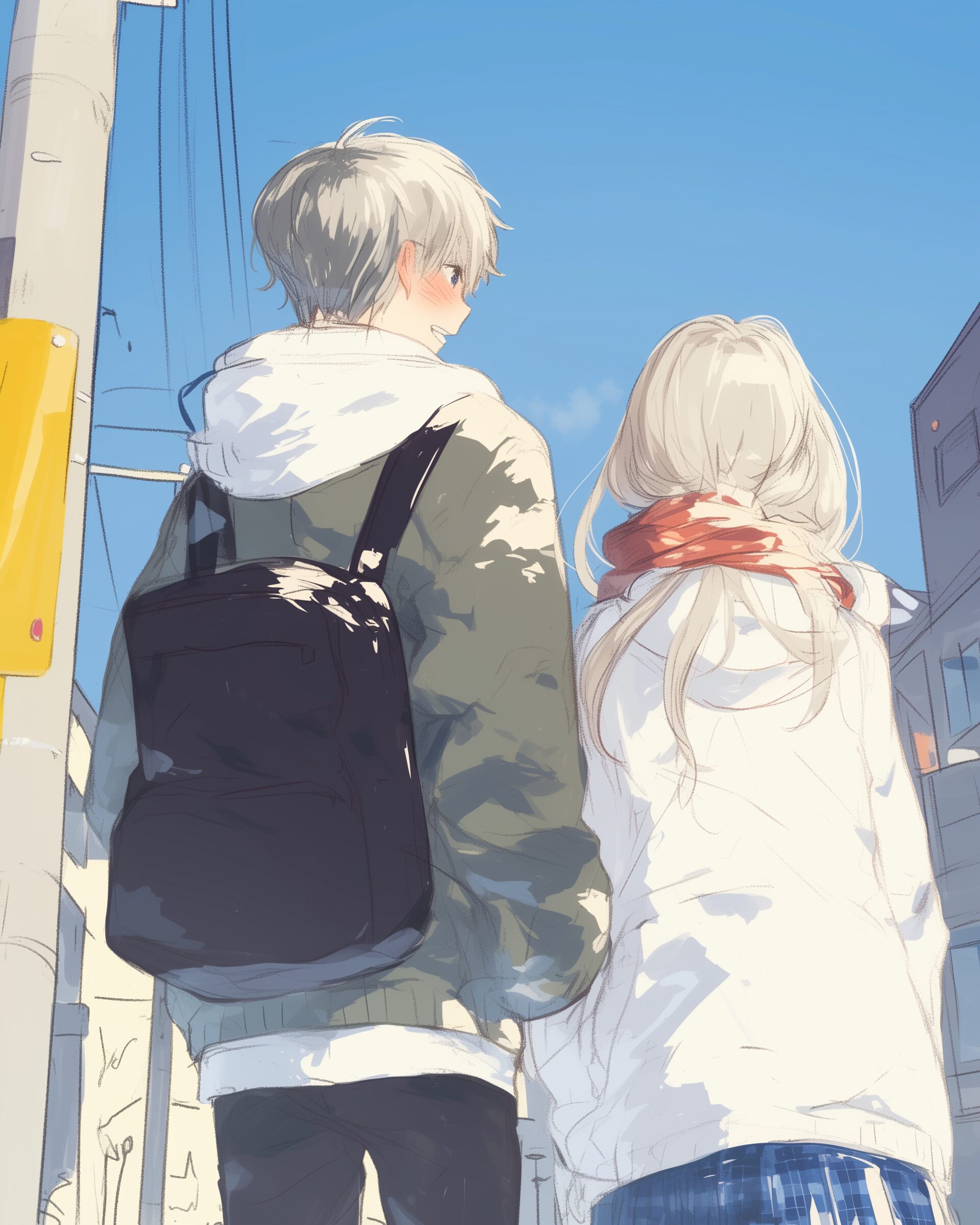 検索タグ:イラスト、ファッション、キャラクター、女性、女、女の子、女子、女の人、アニメ、漫画、マンガ、美人、美女、若い、かわいい、可愛い、カワイイ、人物、顔、美しい、綺麗、きれい、キレイ、アート、お洒落、女子高生、JK、挿絵、冬服、カップル、couple、後ろ姿、男女、恋人、恋愛
