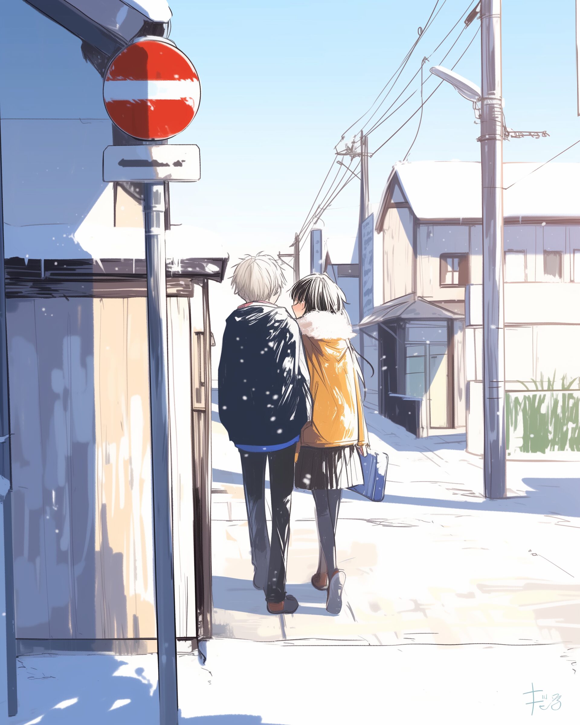 検索タグ:イラスト、ファッション、キャラクター、女性、女、女の子、女子、女の人、アニメ、漫画、マンガ、美人、美女、若い、かわいい、可愛い、カワイイ、人物、顔、美しい、綺麗、きれい、キレイ、アート、お洒落、女子高生、JK、挿絵、冬服、カップル、couple、後ろ姿、男女、恋人、恋愛、仲良し