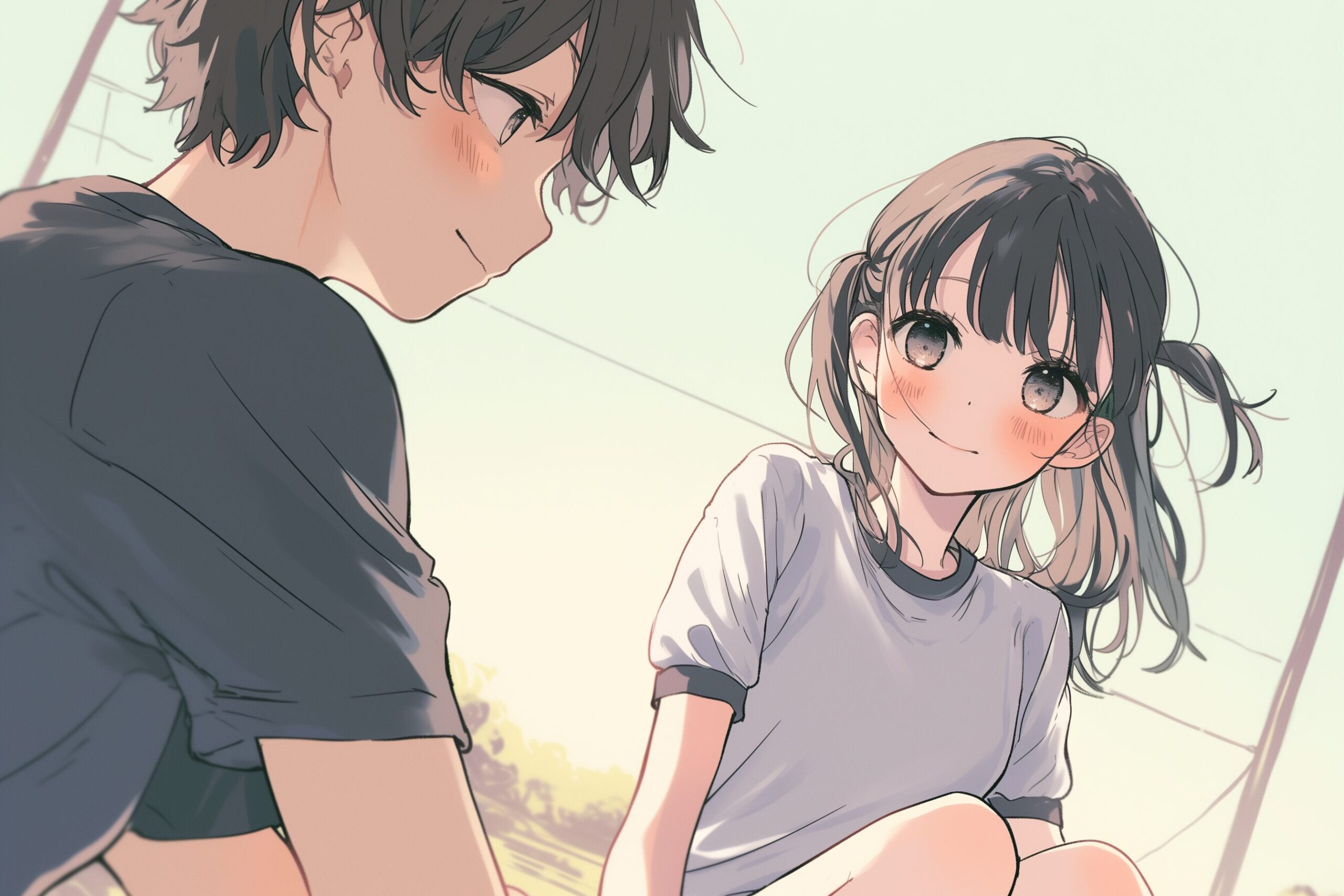 検索タグ:イラスト、ファッション、キャラクター、女性、女、女の子、女子、女の人、アニメ、漫画、マンガ、美人、美女、若い、かわいい、可愛い、カワイイ、人物、顔、美しい、綺麗、きれい、キレイ、アート、お洒落、挿絵、インスタ、Instagram、AI生成画像、コピースペース、カップル、恋人、愛、恋、恋愛、黒髪、制服、卒業式、春、卒業、学生、高校生、中学生、笑顔、微笑む、微笑み、体育祭、体操服