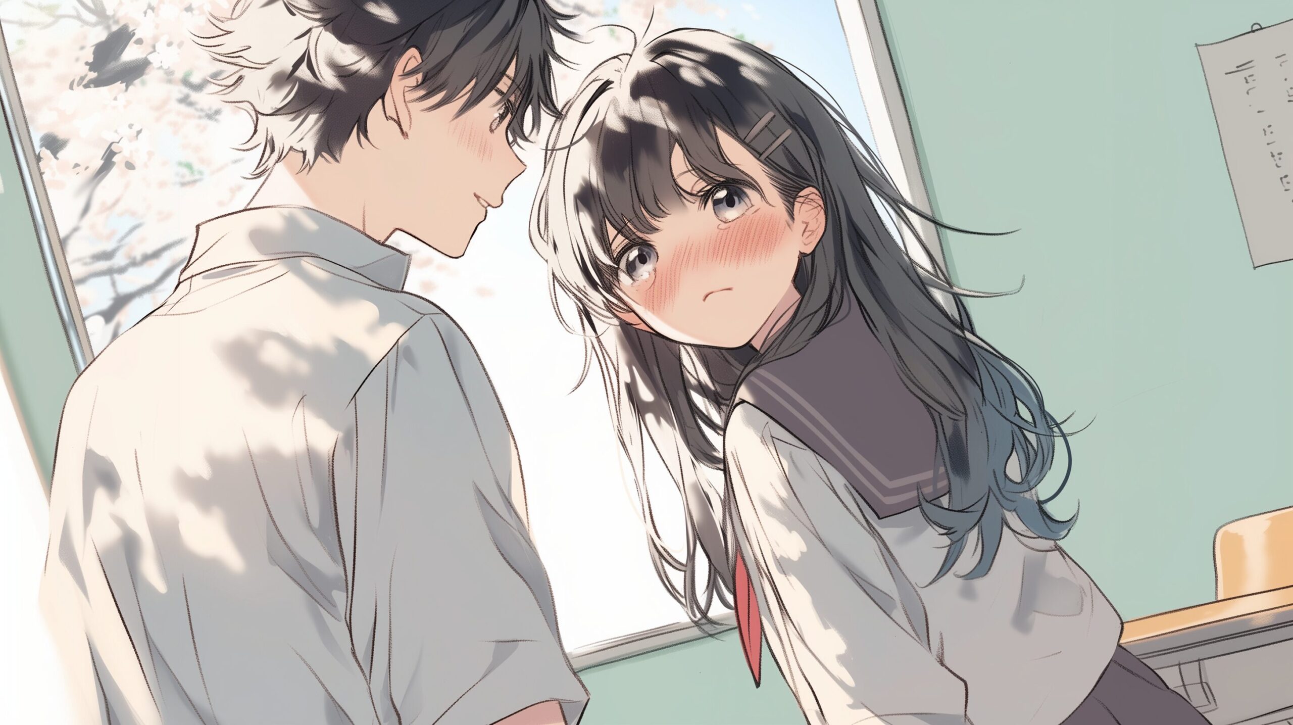 検索タグ:イラスト、ファッション、キャラクター、女性、女、女の子、女子、女の人、アニメ、漫画、マンガ、美人、美女、若い、かわいい、可愛い、カワイイ、人物、顔、美しい、綺麗、きれい、キレイ、アート、お洒落、挿絵、インスタ、Instagram、AI生成画像、コピースペース、カップル、恋人、愛、恋、恋愛、黒髪、制服、卒業式、春、卒業、学生、高校生、中学生、切ない、悲しい、寂しい、淋しい
