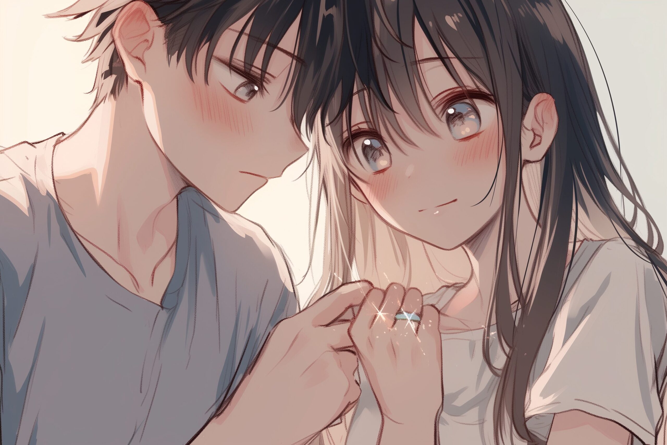 検索タグ:イラスト、ファッション、キャラクター、女性、女、女の子、女子、女の人、アニメ、漫画、マンガ、美人、美女、若い、かわいい、可愛い、カワイイ、人物、顔、美しい、綺麗、きれい、キレイ、アート、お洒落、挿絵、インスタ、Instagram、AI生成画像、コピースペース、カップル、恋人、愛、恋、恋愛、黒髪、春、笑顔、仲良し、寄り添う、男、男性、プロポーズ、告白、結婚、指輪、婚約