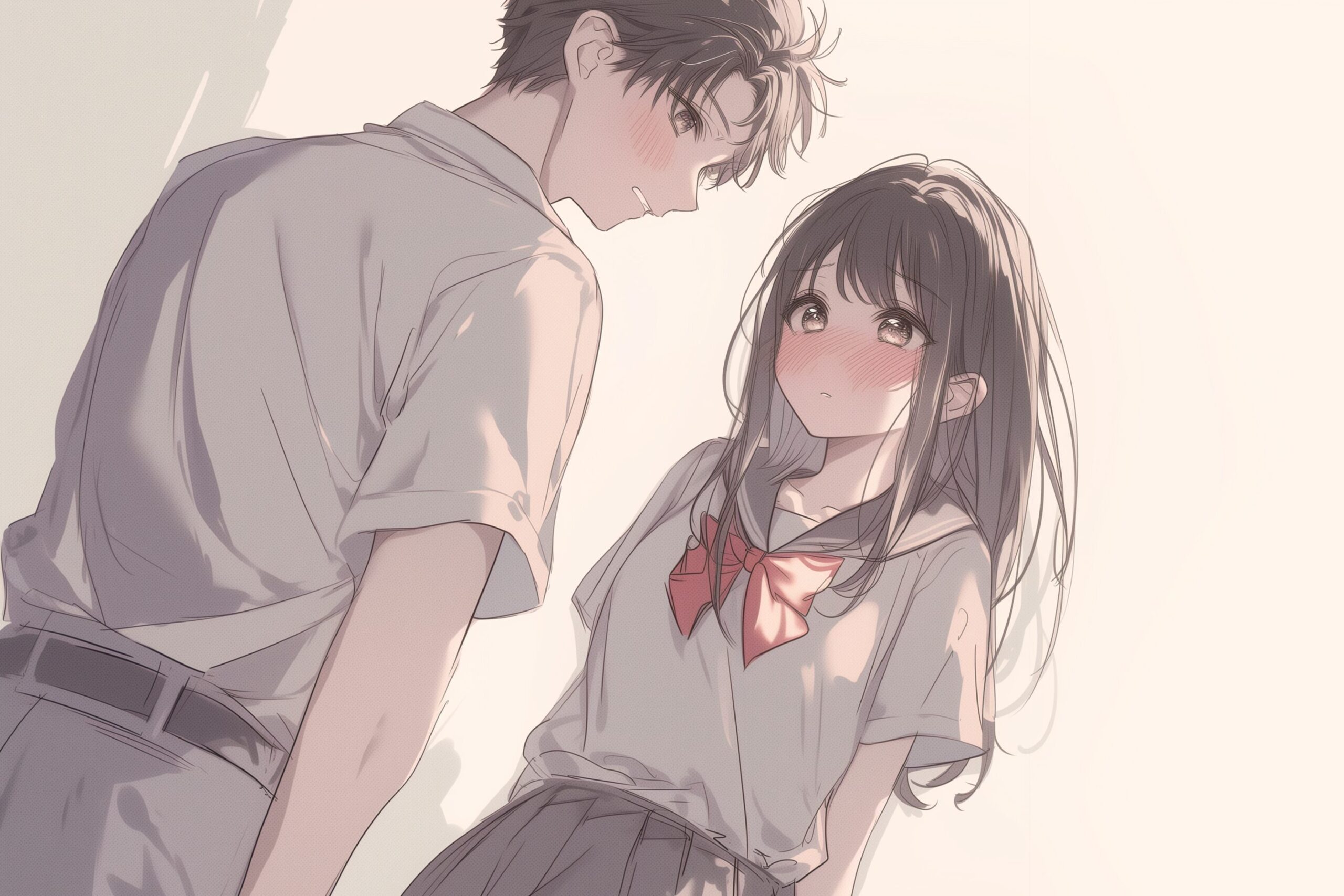 検索タグ:イラスト、ファッション、キャラクター、女性、女、女の子、女子、女の人、アニメ、漫画、マンガ、美人、美女、若い、かわいい、可愛い、カワイイ、人物、顔、美しい、綺麗、きれい、キレイ、アート、お洒落、挿絵、インスタ、Instagram、AI生成画像、コピースペース、カップル、恋人、愛、恋、恋愛、黒髪、制服、春、学生、高校生、中学生、笑顔、仲良し、寄り添う、男、男性