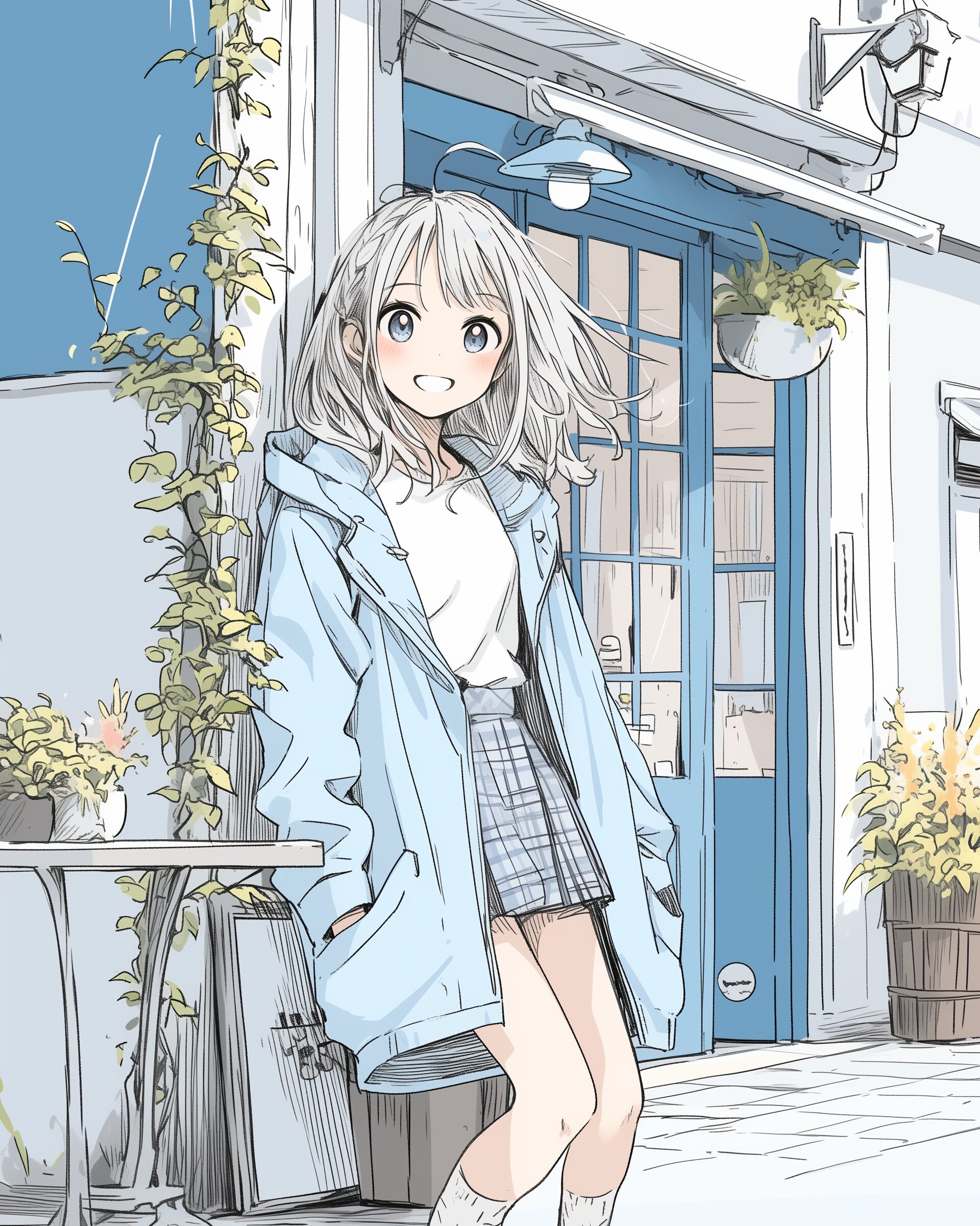 検索タグ:イラスト、ファッション、キャラクター、女性、女、女の子、女子、女の人、アニメ、漫画、マンガ、美人、美女、若い、かわいい、可愛い、カワイイ、人物、顔、美しい、綺麗、きれい、キレイ、アート、お洒落、挿絵、インスタ、Instagram、AI生成画像、fashion、コピースペース、銀髪、カフェ、待ち合わせ、冬服、コート、デート