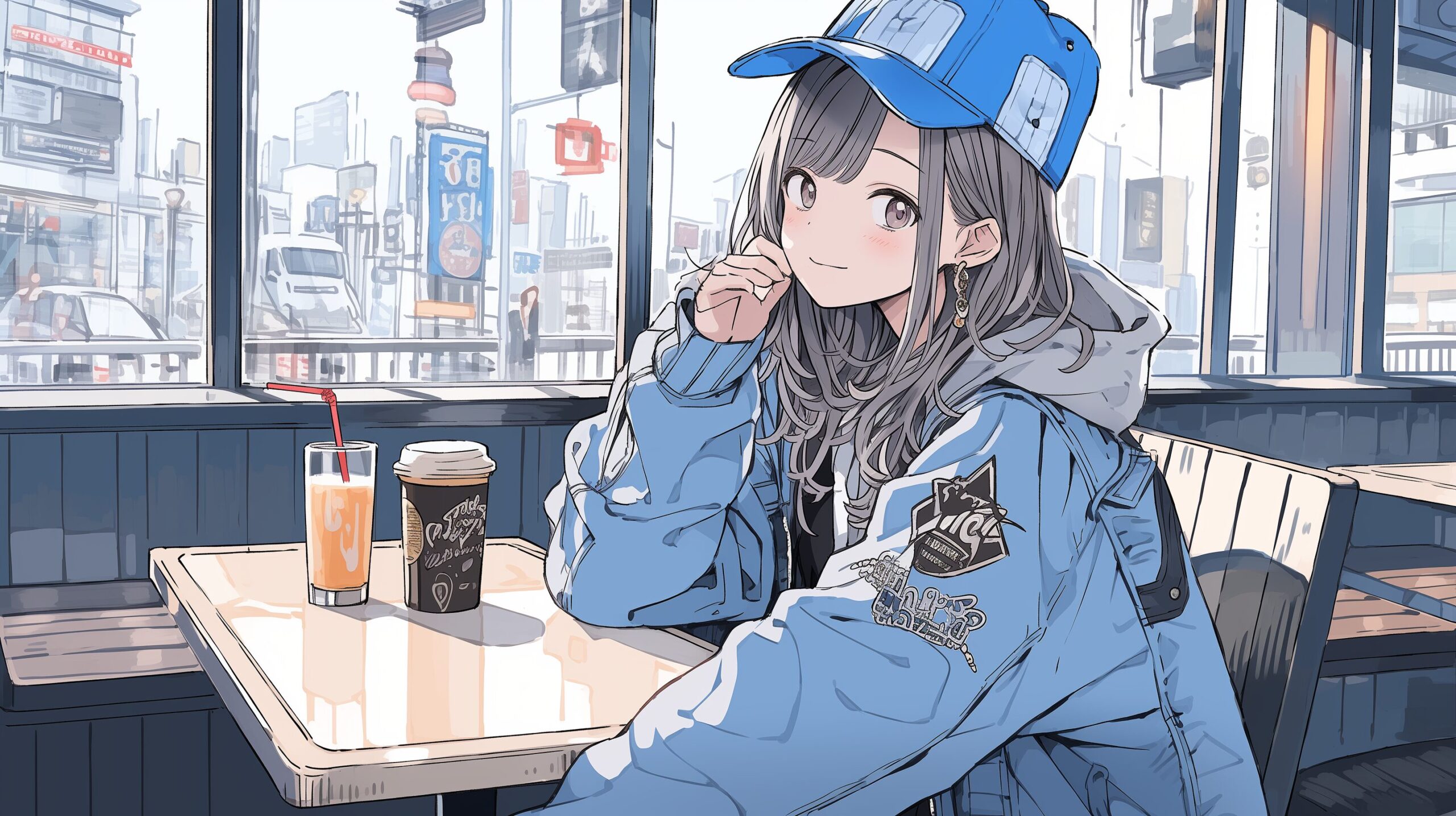 検索タグ:イラスト、ファッション、キャラクター、女性、女、女の子、女子、女の人、アニメ、漫画、マンガ、美人、美女、若い、かわいい、可愛い、カワイイ、人物、顔、美しい、綺麗、きれい、キレイ、アート、お洒落、女子高生、JK、挿絵、夏、春、パステルカラー、トップス、春服、インスタ、Instagram、青、BLUE、ブルー、カフェ
