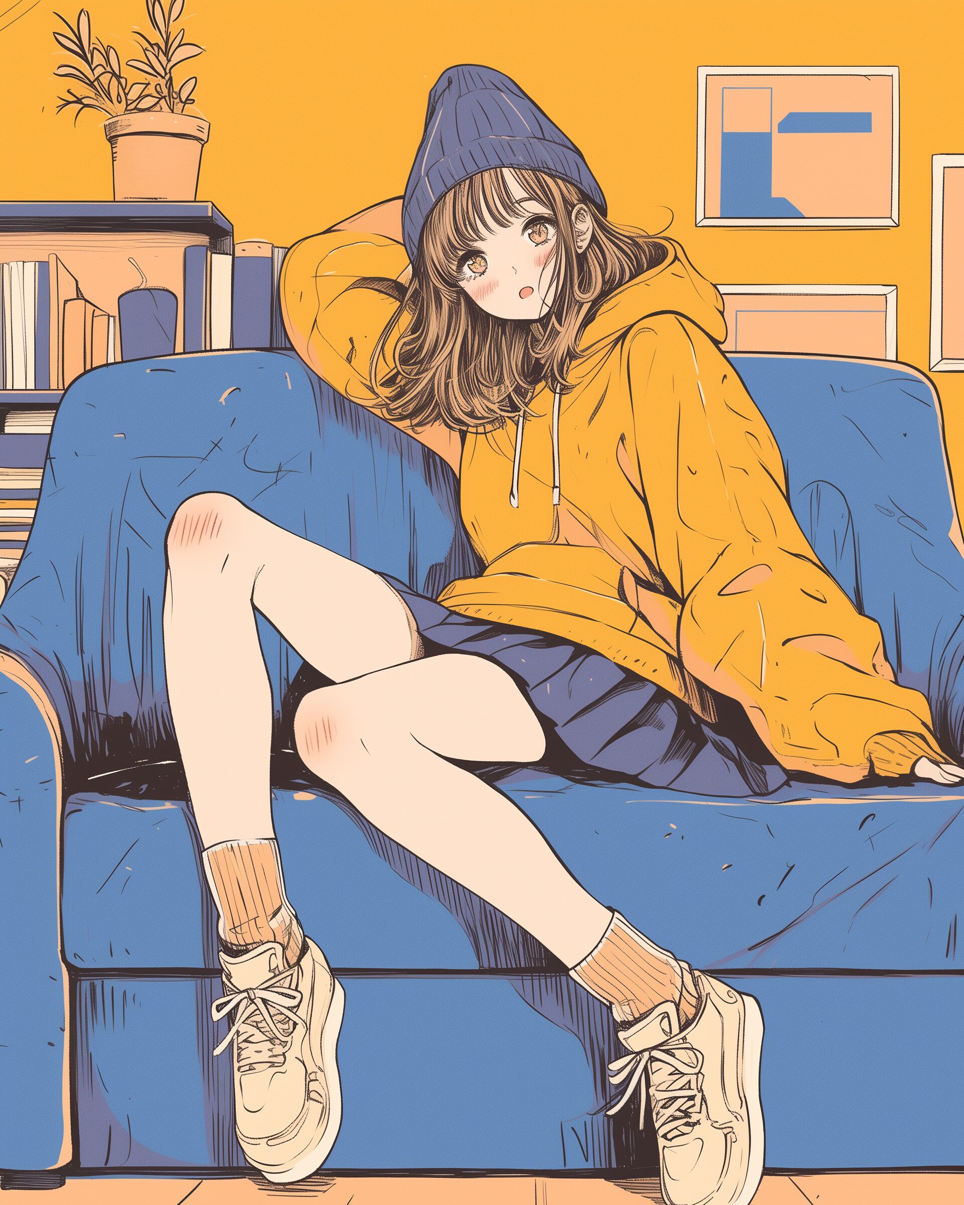 検索タグ:イラスト、ファッション、キャラクター、女性、女、女の子、女子、女の人、アニメ、漫画、マンガ、美人、美女、若い、かわいい、可愛い、カワイイ、人物、顔、美しい、綺麗、きれい、キレイ、アート、お洒落、挿絵、インスタ、Instagram、AI生成画像、fashion、コピースペース、おしゃれ、オシャレ、秋、秋服、パーカー女子、カフェ、イエロー、黄色、ニット帽、帽子