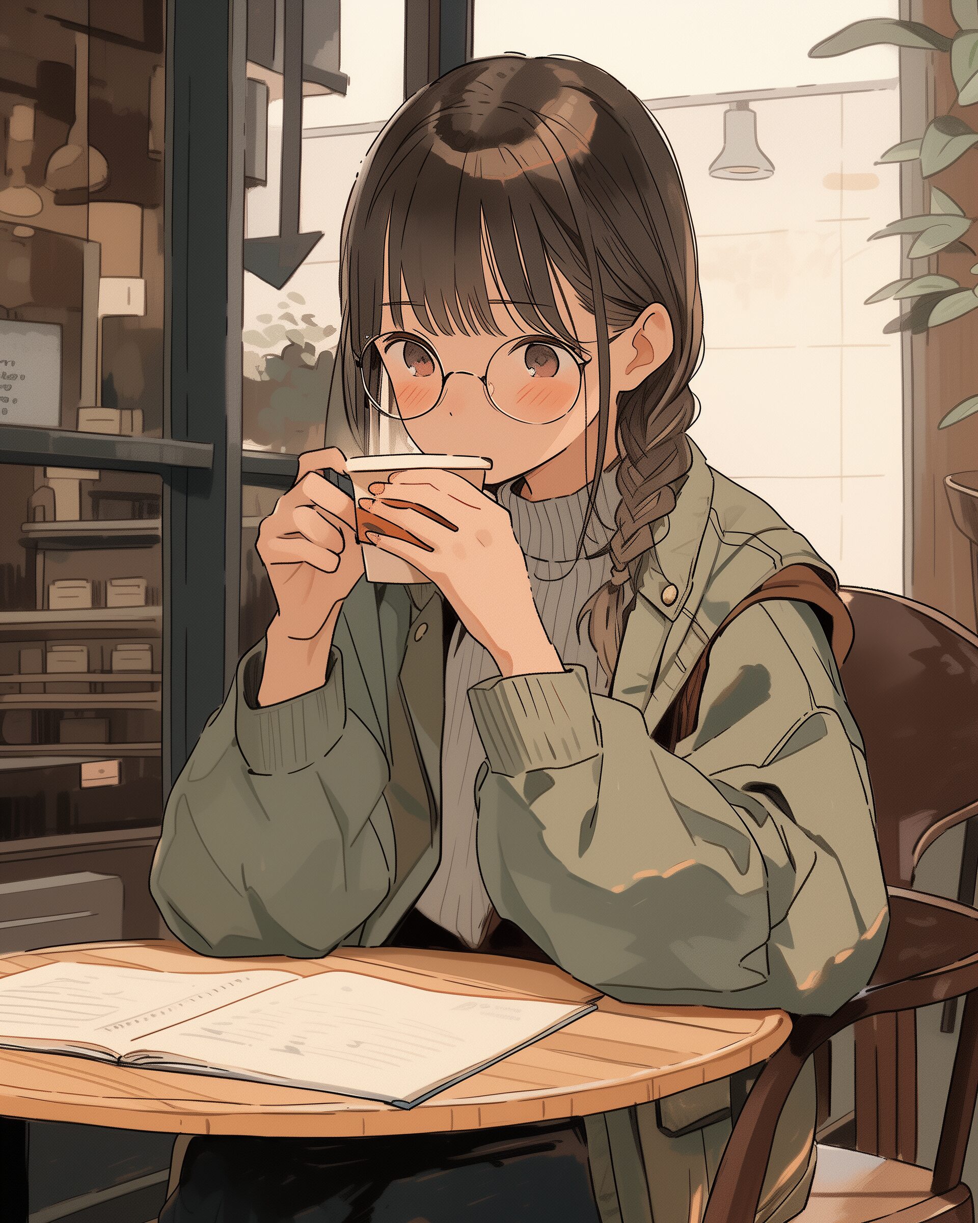 検索タグ:イラスト、ファッション、キャラクター、女性、女、女の子、女子、女の人、アニメ、漫画、マンガ、美人、美女、若い、かわいい、可愛い、カワイイ、人物、顔、美しい、綺麗、きれい、キレイ、アート、お洒落、挿絵、インスタ、Instagram、AI生成画像、fashion、コピースペース、おしゃれ、オシャレ、秋、秋服、パーカー女子、カフェ、カーキ、読書、勉強、コーヒー、眼鏡、メガネ、めがね