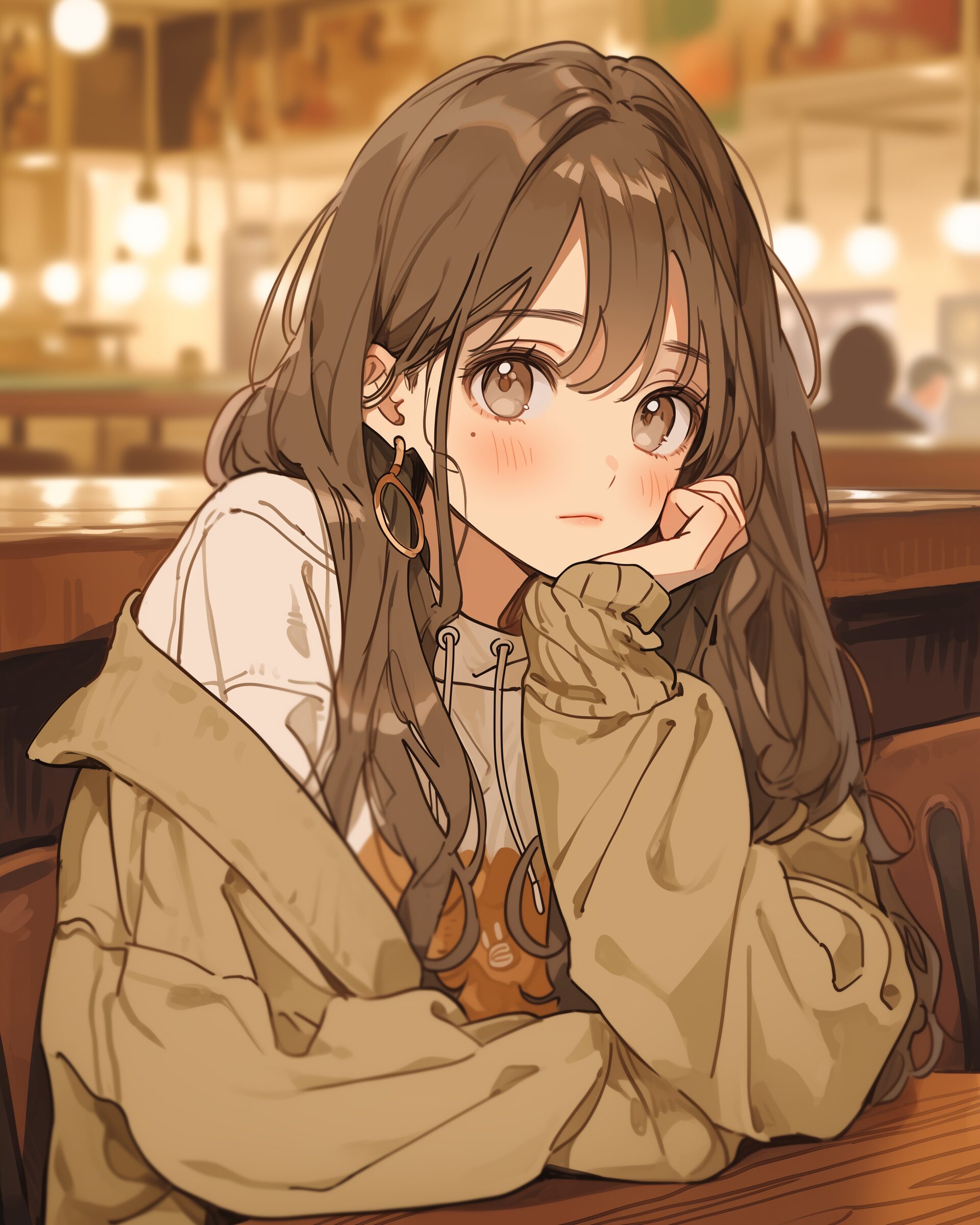検索タグ:イラスト、ファッション、キャラクター、女性、女、女の子、女子、女の人、アニメ、漫画、マンガ、美人、美女、若い、かわいい、可愛い、カワイイ、人物、顔、美しい、綺麗、きれい、キレイ、アート、お洒落、挿絵、インスタ、Instagram、AI生成画像、fashion、コピースペース、おしゃれ、オシャレ、秋、秋服、パーカー女子、カフェ、カーキ
