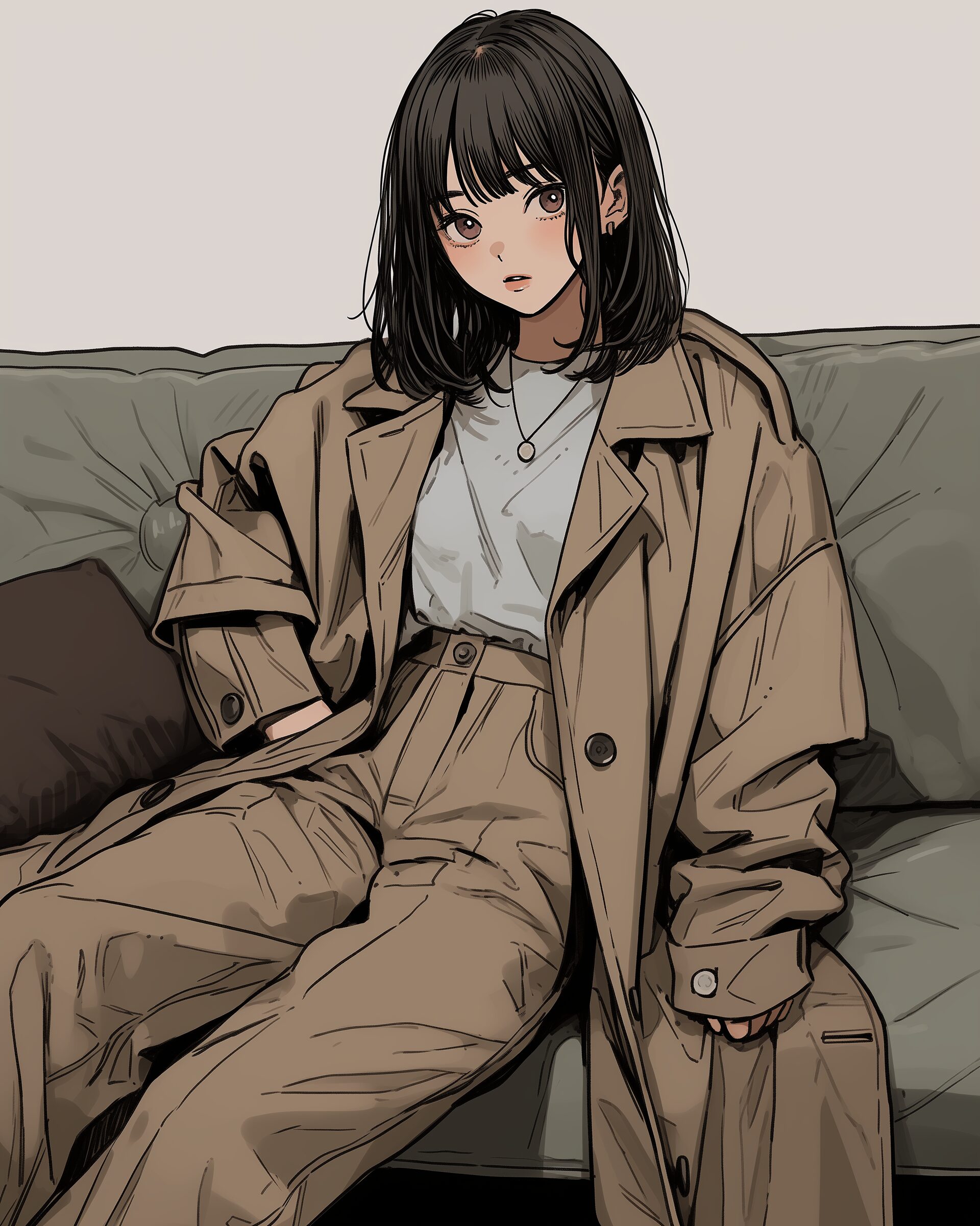 検索タグ:イラスト、ファッション、キャラクター、女性、女、女の子、女子、女の人、アニメ、漫画、マンガ、美人、美女、若い、かわいい、可愛い、カワイイ、人物、顔、美しい、綺麗、きれい、キレイ、アート、洋服、お洒落、パーカー女子、パーカー、カーキ、女子高生、JK、ベージュ
