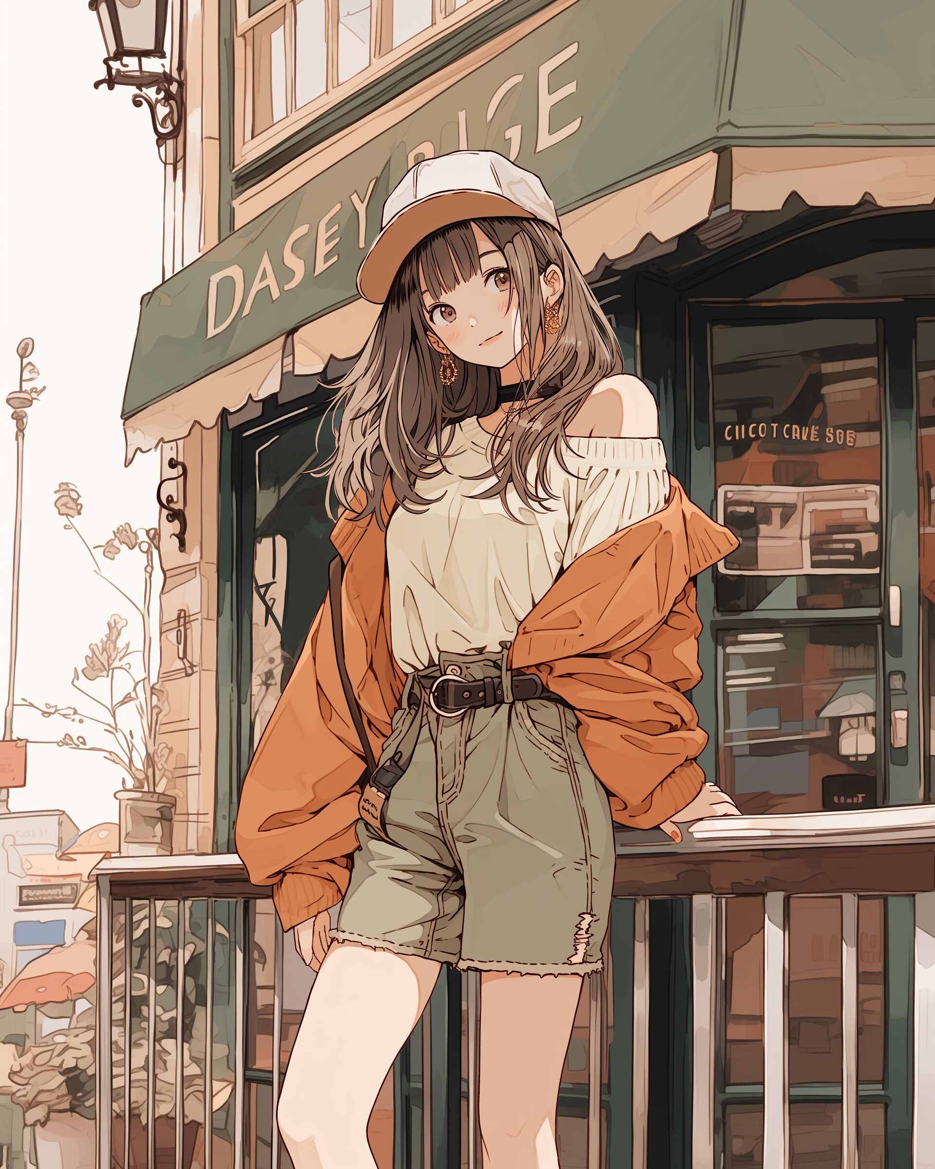 検索タグ:イラスト、ファッション、キャラクター、女性、女、女の子、女子、女の人、アニメ、漫画、マンガ、美人、美女、若い、かわいい、可愛い、カワイイ、人物、顔、美しい、綺麗、きれい、キレイ、アート、お洒落、女子高生、JK、挿絵、夏、春、パステルカラー、春服、インスタ、Instagram、カーキ、オレンジ、khaki、orange