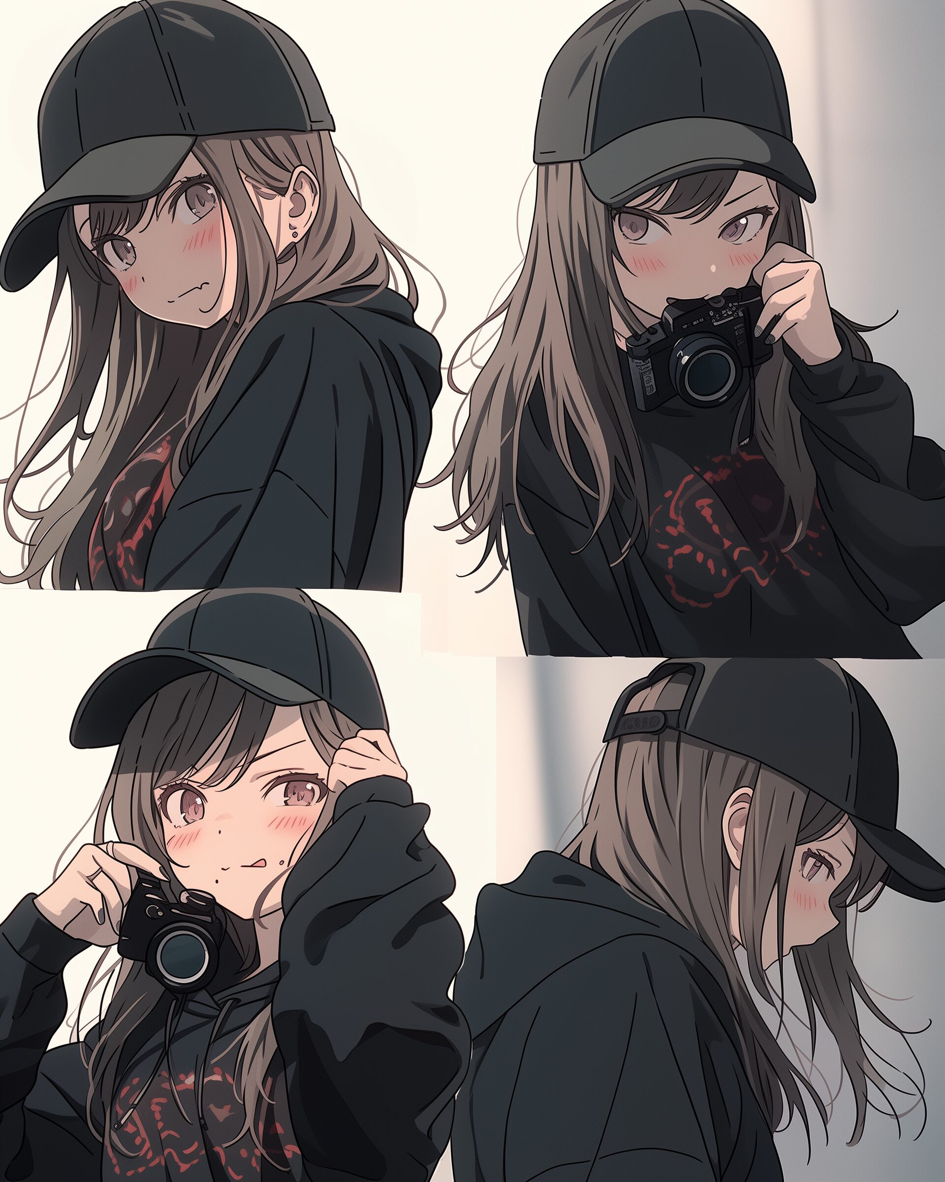 検索タグ:イラスト、ファッション、キャラクター、女性、女、女の子、女子、女の人、アニメ、漫画、マンガ、美人、美女、若い、かわいい、可愛い、カワイイ、人物、顔、美しい、綺麗、きれい、キレイ、アート、お洒落、挿絵、インスタ、Instagram、AI生成画像、fashion、コピースペース、おしゃれ、オシャレ、秋、秋服、パーカー女子、黒、ブラック、Black、帽子、キャップ