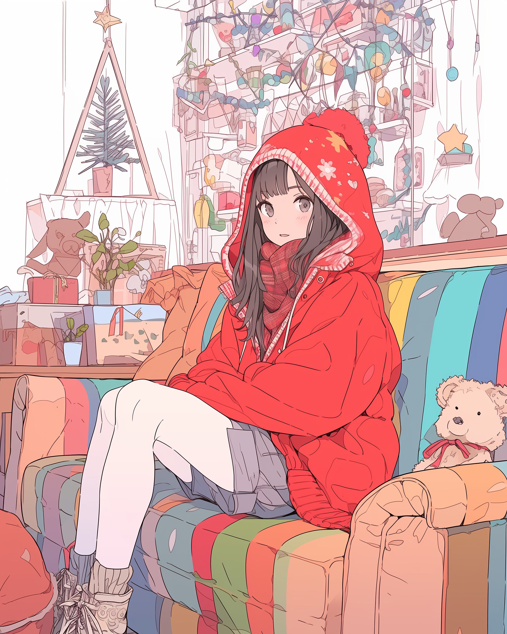 検索タグ:イラスト、ファッション、キャラクター、女性、女、女の子、女子、女の人、アニメ、漫画、マンガ、美人、美女、若い、かわいい、可愛い、カワイイ、人物、顔、美しい、綺麗、きれい、キレイ、アート、お洒落、挿絵、インスタ、Instagram、AI生成画像、fashion、コピースペース、おしゃれ、オシャレ、秋、秋服、冬服、パーカー女子、クリスマスの飾り付け