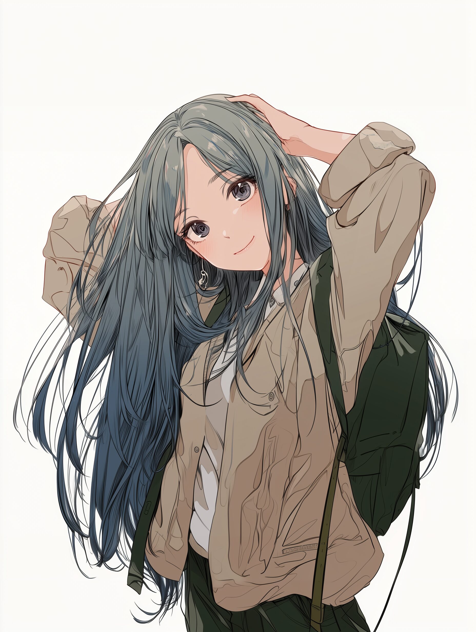検索タグ:イラスト、ファッション、キャラクター、女性、女、女の子、女子、女の人、アニメ、漫画、マンガ、美人、美女、若い、かわいい、可愛い、カワイイ、人物、顔、美しい、綺麗、きれい、キレイ、アート、お洒落、挿絵、インスタ、Instagram、AI生成画像、fashion、コピースペース、ロングヘア、青髪、クール、かっこいい