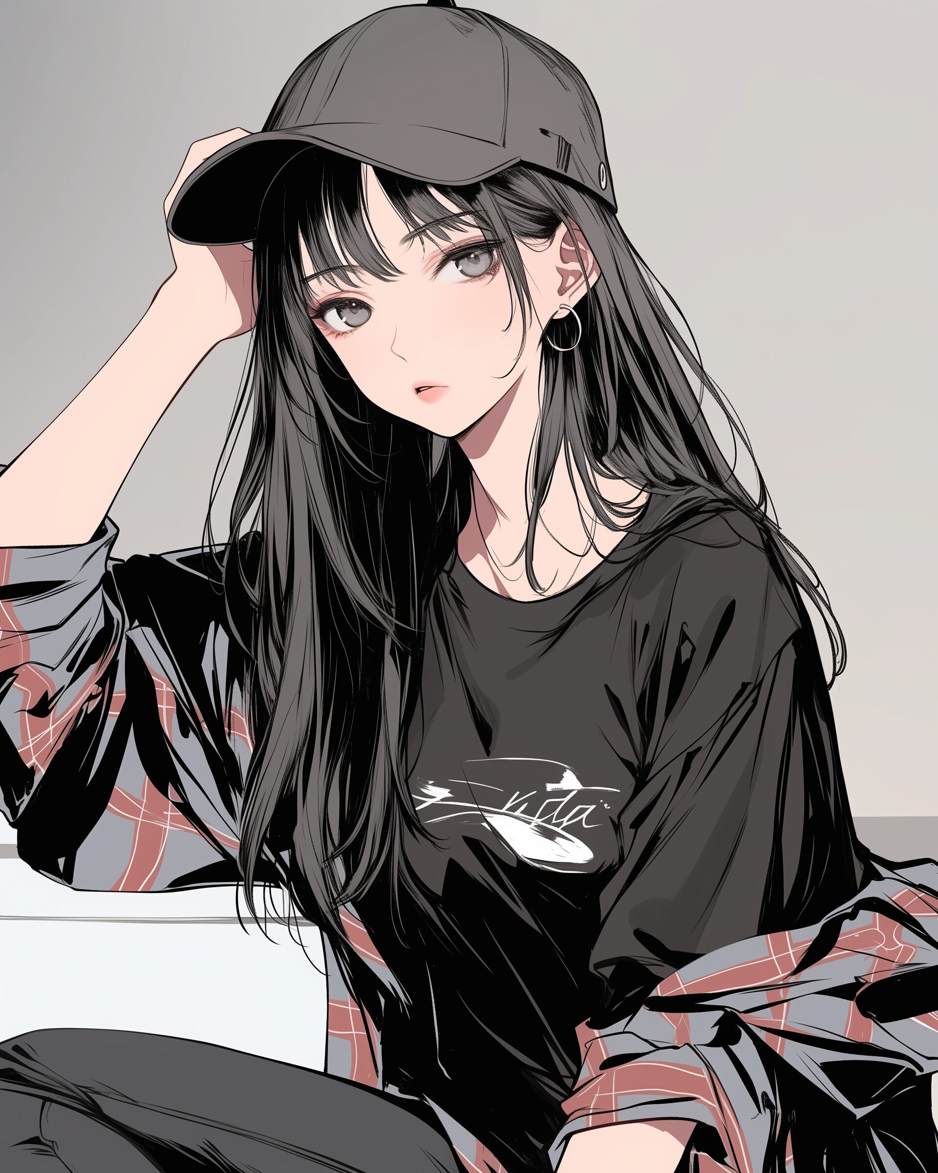 検索タグ:イラスト、キャラクター、女性、女、女の人、アニメ、漫画、マンガ、若い、人物、顔、美しい、綺麗、きれい、キレイ、アート、お洒落、挿絵、インスタ、Instagram、AI生成画像、コピースペース、美女、美人、可愛い、かわいい、kawaii、黒髪、ロングヘア、髪型、長い髪、黒、ブラック、クール、ファッション