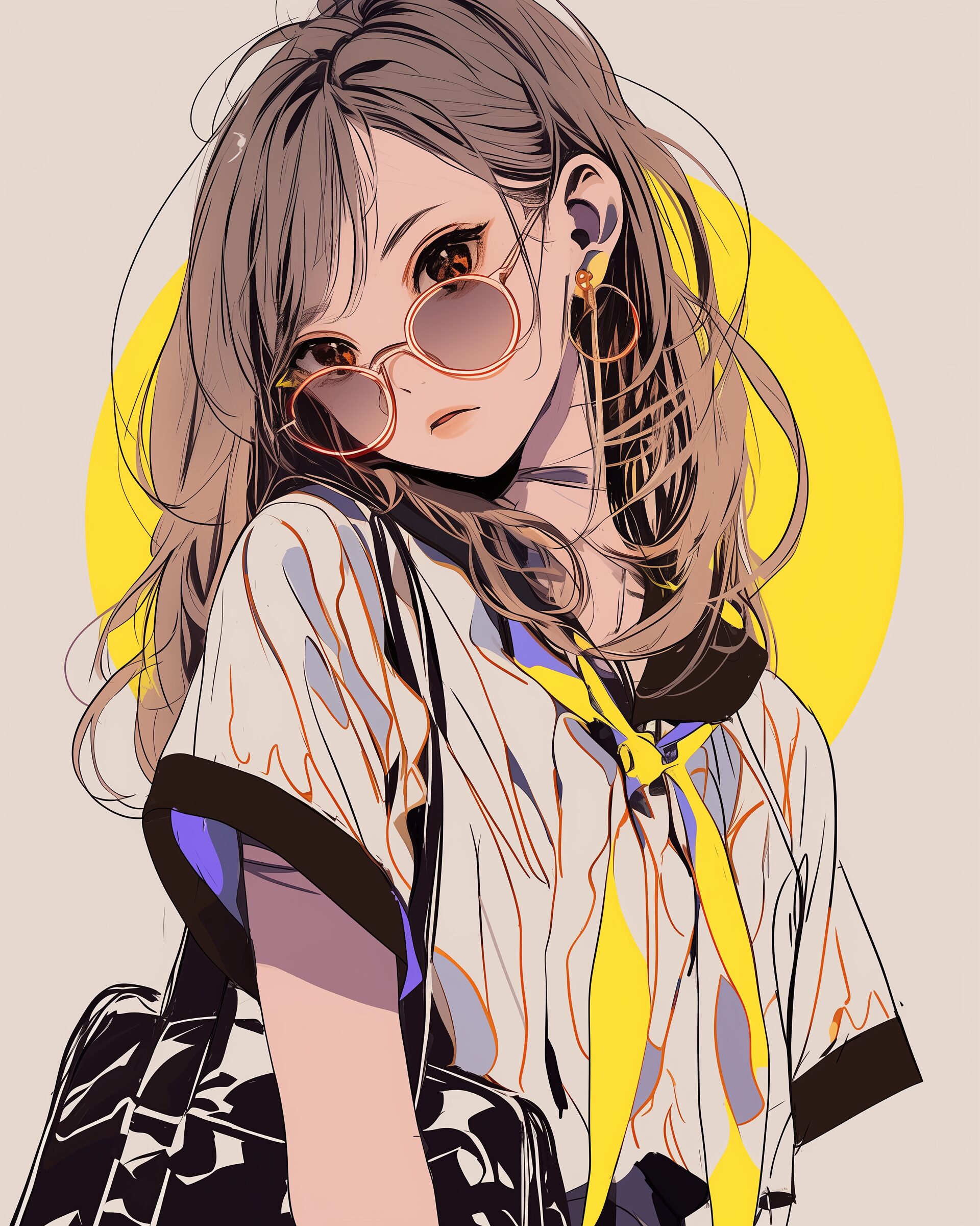 検索タグ:イラスト、ファッション、キャラクター、女性、女、女の子、女子、女の人、アニメ、漫画、マンガ、美人、美女、若い、かわいい、可愛い、カワイイ、人物、顔、美しい、綺麗、きれい、キレイ、アート、お洒落、女子高生、JK、挿絵、夏、春、パステルカラー、春服、インスタ、Instagram、夏、夏服、summer、fashion、黄色、イエロー、yellow、サングラス、メガネ、眼鏡、めがね、クール、アイコン、icon
