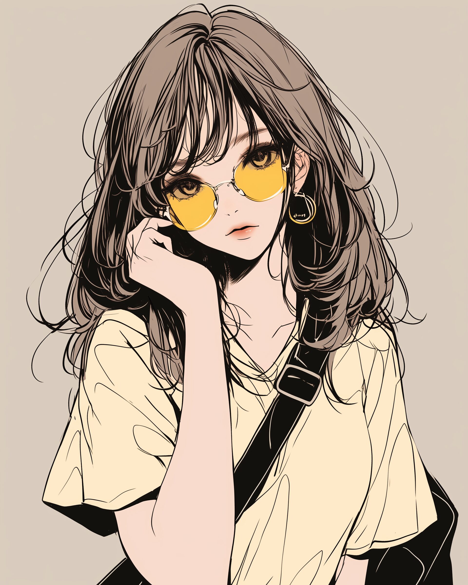 検索タグ:イラスト、ファッション、キャラクター、女性、女、女の子、女子、女の人、アニメ、漫画、マンガ、美人、美女、若い、かわいい、可愛い、カワイイ、人物、顔、美しい、綺麗、きれい、キレイ、アート、お洒落、女子高生、JK、挿絵、夏、春、パステルカラー、春服、インスタ、Instagram、夏、夏服、summer、fashion、黄色、イエロー、yellow、サングラス、メガネ、眼鏡、めがね、クール、アイコン、icon