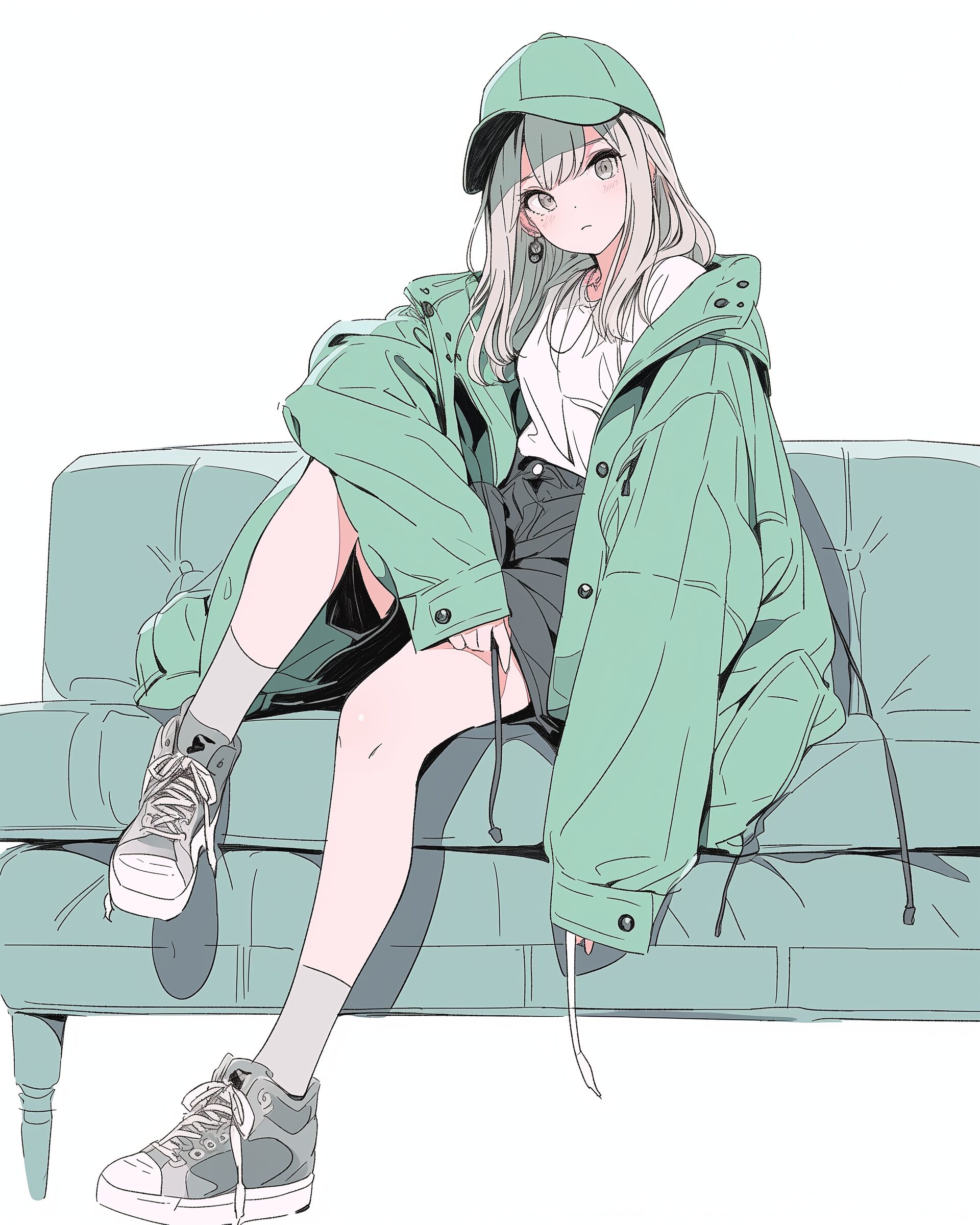 検索タグ:イラスト、ファッション、キャラクター、女性、女、女の子、女子、女の人、アニメ、漫画、マンガ、美人、美女、若い、かわいい、可愛い、カワイイ、人物、顔、美しい、綺麗、きれい、キレイ、アート、洋服、お洒落、女子高生、JK、横顔、切ない、挿絵、夜、緑、グリーン、ジャケット