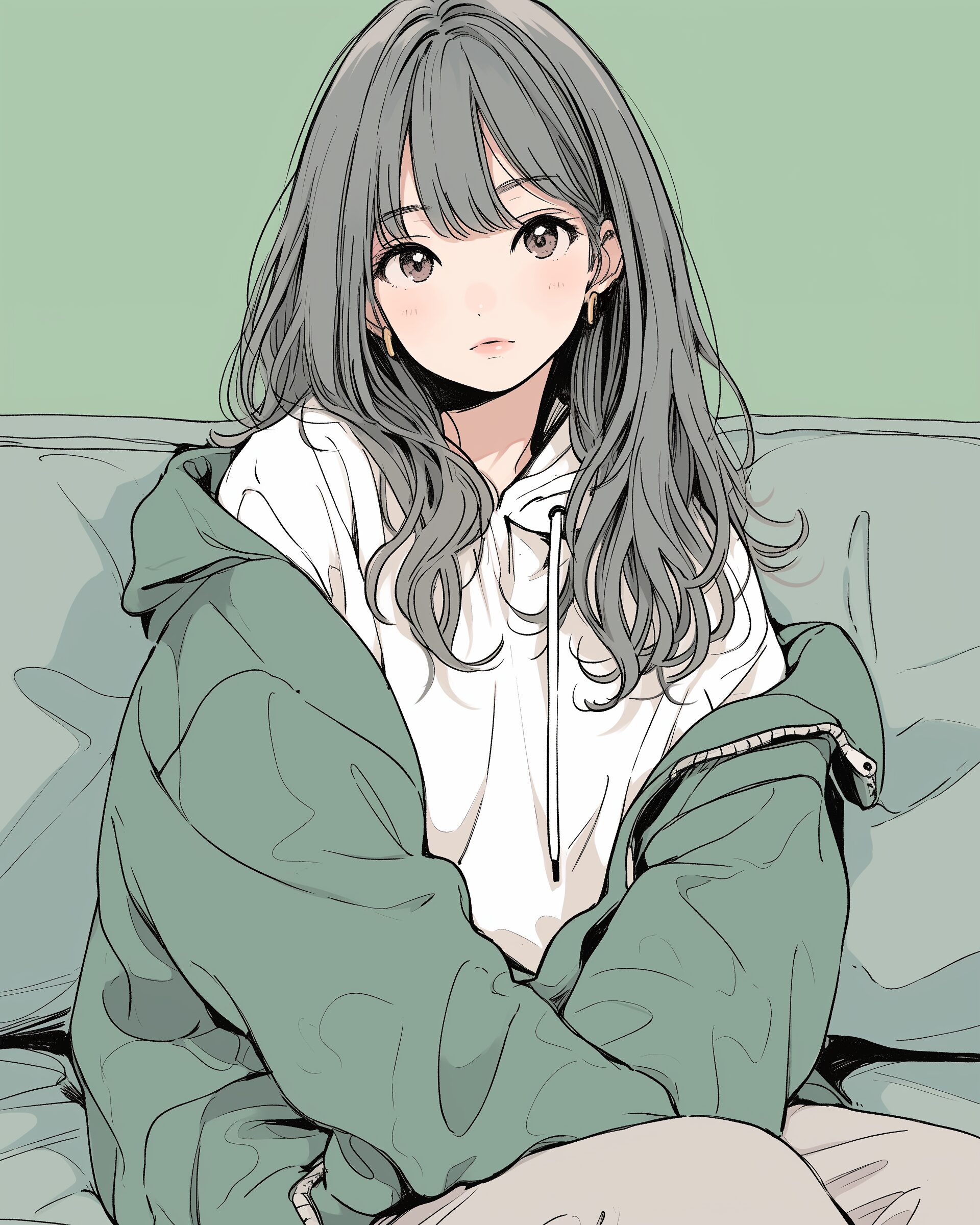 検索タグ:イラスト、ファッション、キャラクター、女性、女、女の子、女子、女の人、アニメ、漫画、マンガ、美人、美女、若い、かわいい、可愛い、カワイイ、人物、顔、美しい、綺麗、きれい、キレイ、アート、お洒落、女子高生、JK、挿絵、夏、春、パステルカラー、トップス、春服、hoodie、パーカー、パーカー女子、緑、グリーン、green