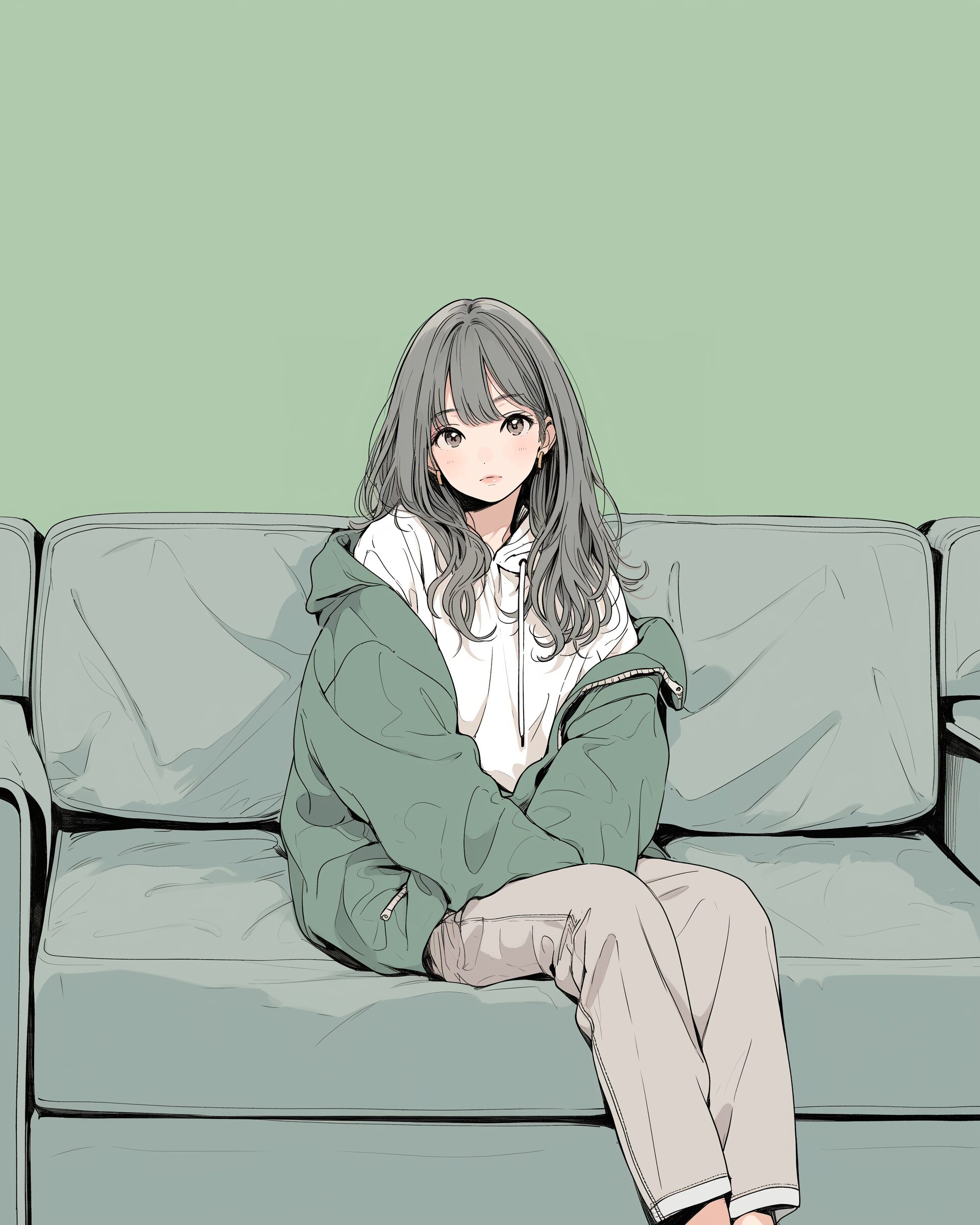 検索タグ:イラスト、ファッション、キャラクター、女性、女、女の子、女子、女の人、アニメ、漫画、マンガ、美人、美女、若い、かわいい、可愛い、カワイイ、人物、顔、美しい、綺麗、きれい、キレイ、アート、お洒落、女子高生、JK、挿絵、夏、春、パステルカラー、トップス、春服、hoodie、パーカー、パーカー女子、緑、グリーン、green