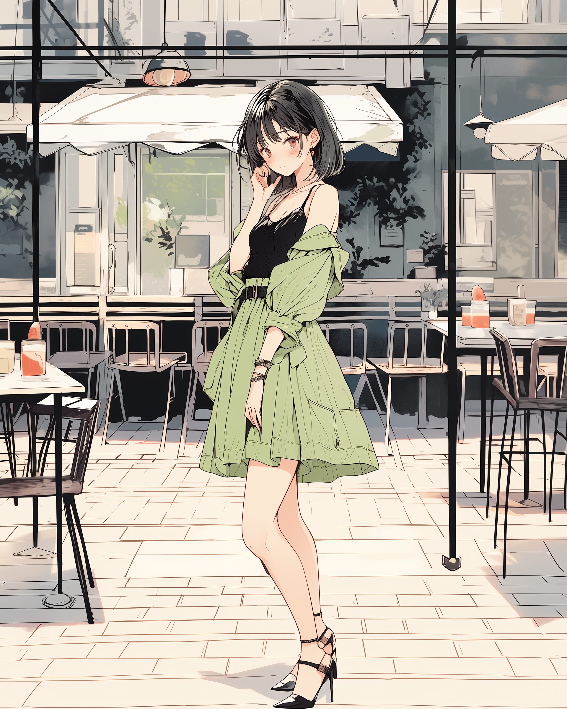 検索タグ:イラスト、ファッション、キャラクター、女性、女、女の子、女子、女の人、アニメ、漫画、マンガ、美人、美女、若い、かわいい、可愛い、カワイイ、人物、顔、美しい、綺麗、きれい、キレイ、アート、お洒落、女子高生、JK、挿絵、夏、春、パステルカラー、春服、インスタ、Instagram、夏、夏服、summer、fashion、サムネイル、アイキャッチ、コピースペース、秋服、グリーン、緑