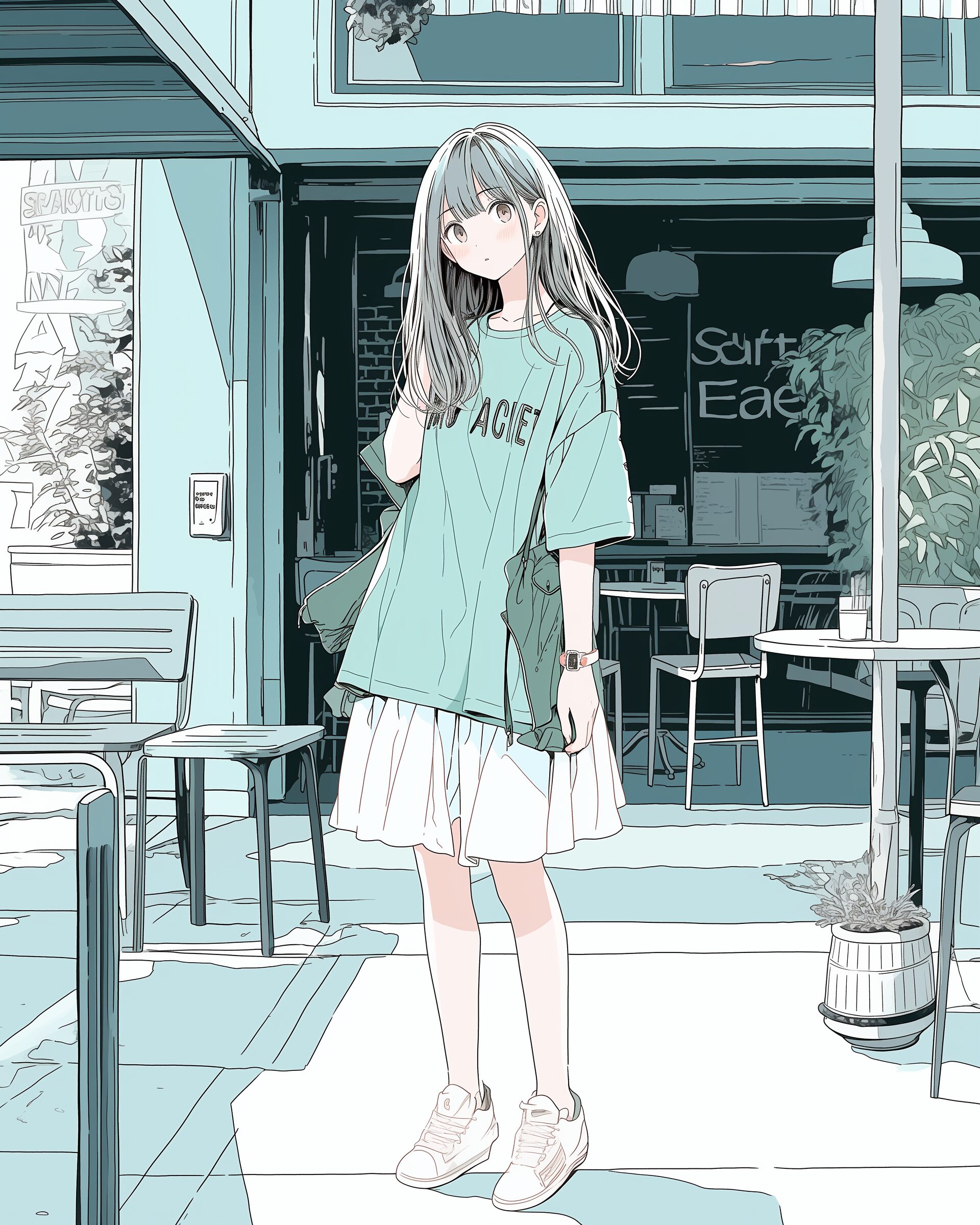 検索タグ:イラスト、ファッション、キャラクター、女性、女、女の子、女子、女の人、アニメ、漫画、マンガ、美人、美女、若い、かわいい、可愛い、カワイイ、人物、顔、美しい、綺麗、きれい、キレイ、アート、お洒落、女子高生、JK、挿絵、夏、春、パステルカラー、春服、インスタ、Instagram、夏、夏服、summer、fashion、サムネイル、アイキャッチ、コピースペース、秋服、グリーン、緑