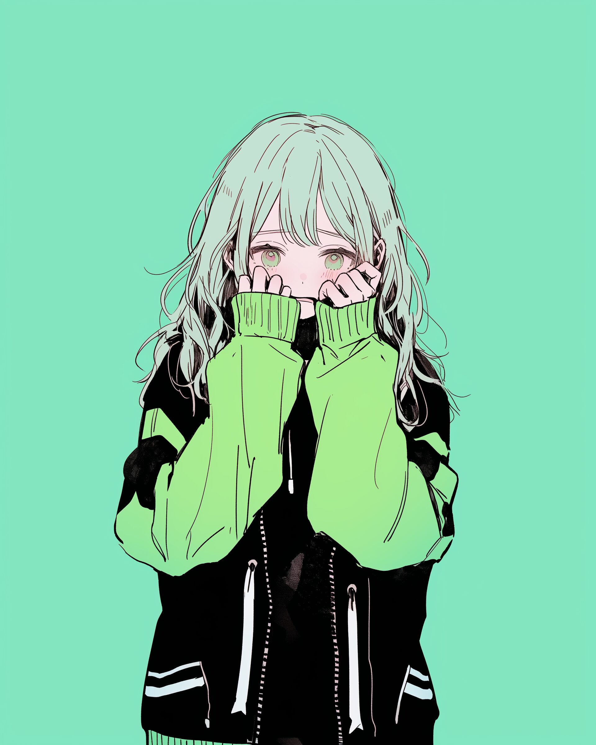 検索タグ:イラスト、ファッション、キャラクター、女性、女、女の子、女子、女の人、アニメ、漫画、マンガ、美人、美女、若い、かわいい、可愛い、カワイイ、人物、顔、美しい、綺麗、きれい、キレイ、アート、お洒落、女子高生、JK、挿絵、夏、春、パステルカラー、春服、インスタ、Instagram、グリーン、緑、Green