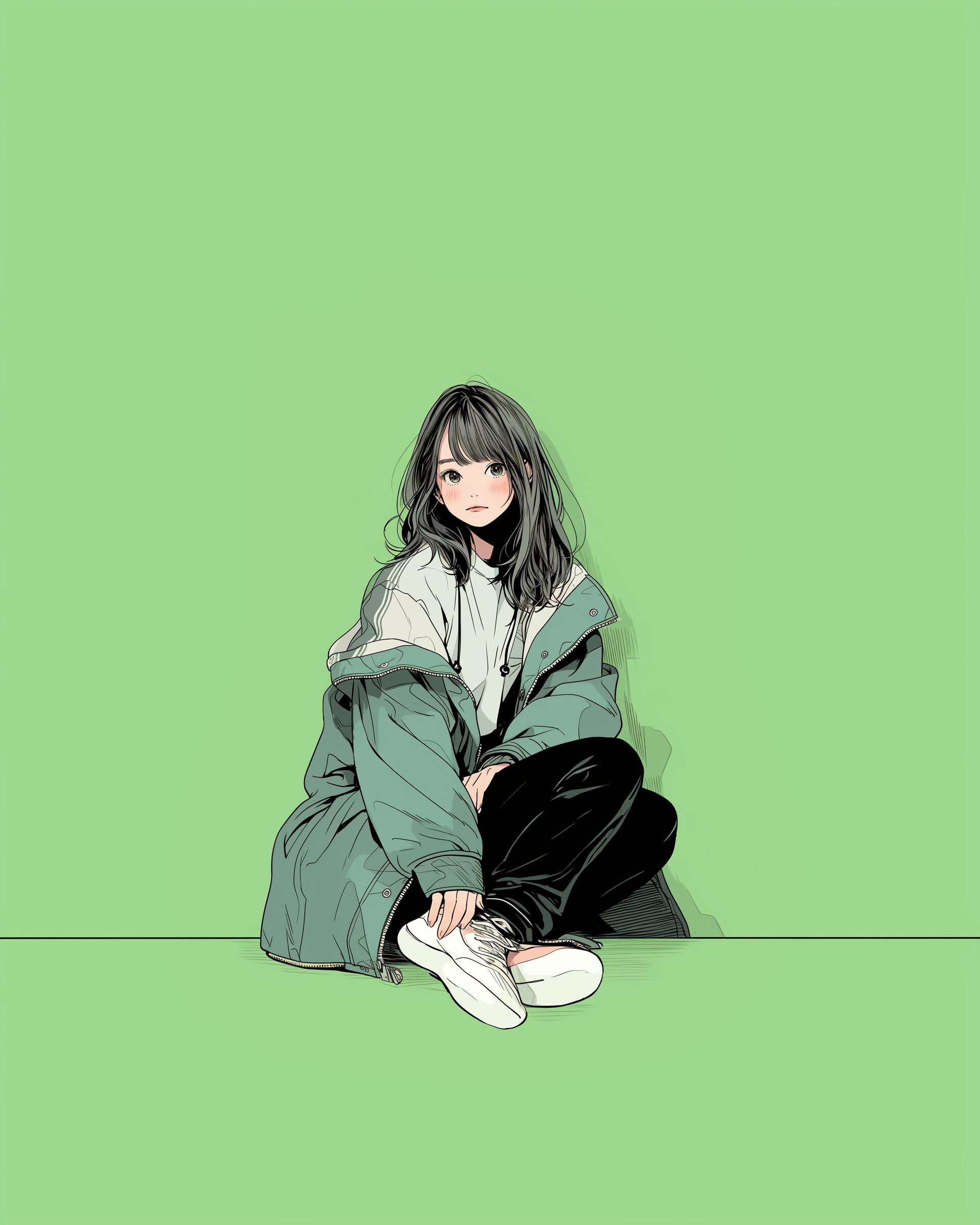 検索タグ:イラスト、ファッション、キャラクター、女性、女、女の子、女子、女の人、アニメ、漫画、マンガ、美人、美女、若い、かわいい、可愛い、カワイイ、人物、顔、美しい、綺麗、きれい、キレイ、アート、お洒落、女子高生、JK、挿絵、夏、春、パステルカラー、トップス、春服、hoodie、パーカー、パーカー女子、グリーン、緑、green