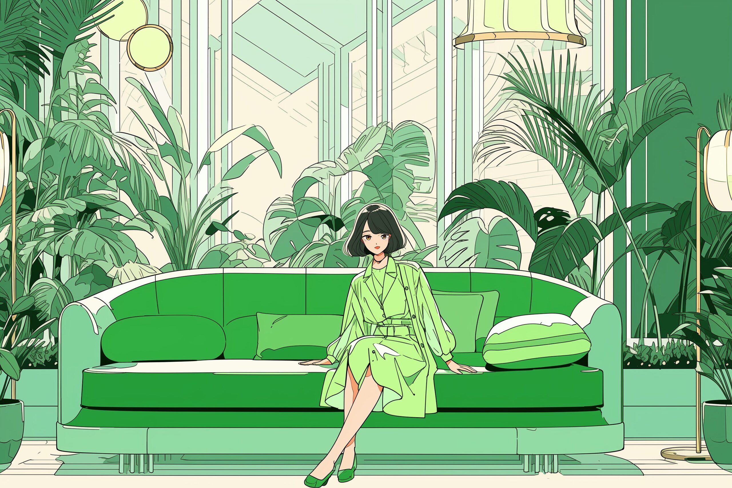 検索タグ:イラスト、ファッション、キャラクター、女性、女、女の子、女子、女の人、アニメ、漫画、マンガ、美人、美女、若い、かわいい、可愛い、カワイイ、人物、顔、美しい、綺麗、きれい、キレイ、アート、お洒落、女子高生、JK、挿絵、夏、春、パステルカラー、トップス、春服、hoodie、パーカー、パーカー女子、待ち受け画像、春服、緑、ソファ、グリーン、Green