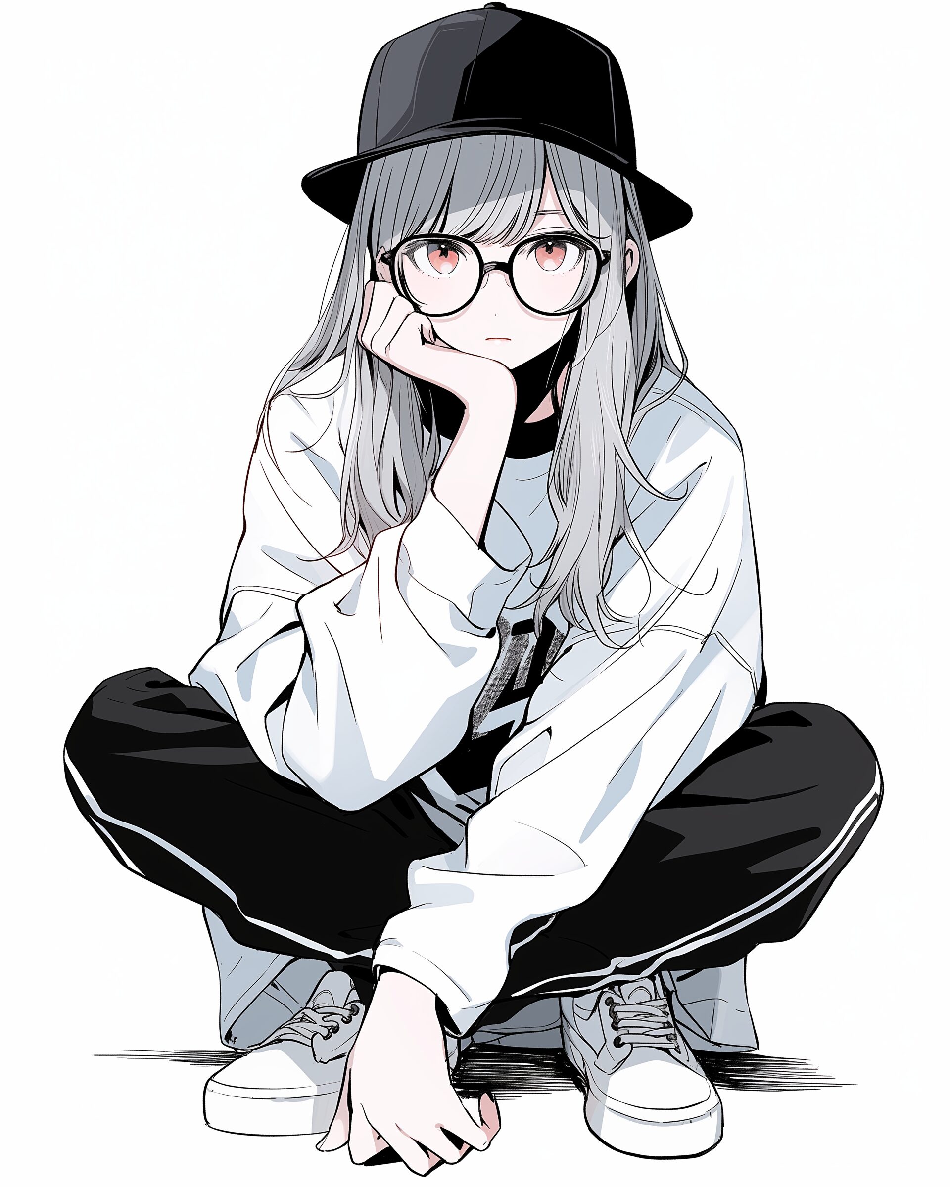 検索タグ:イラスト、ファッション、キャラクター、女性、女、女の子、女子、女の人、アニメ、漫画、マンガ、美人、美女、若い、かわいい、可愛い、カワイイ、人物、顔、美しい、綺麗、きれい、キレイ、アート、お洒落、女子高生、JK、挿絵、夏、春、パステルカラー、春服、インスタ、Instagram、ベージュ、beige、グレー、 grey。座る、座っている、めがね、メガネ、眼鏡