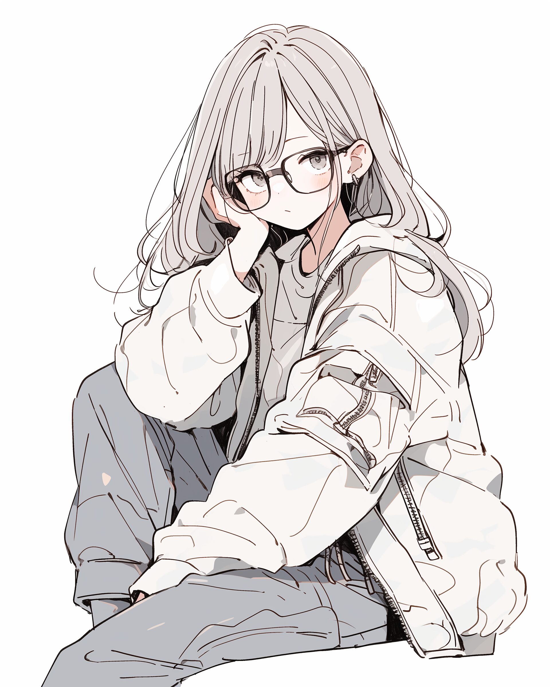 検索タグ:イラスト、ファッション、キャラクター、女性、女、女の子、女子、女の人、アニメ、漫画、マンガ、美人、美女、若い、かわいい、可愛い、カワイイ、人物、顔、美しい、綺麗、きれい、キレイ、アート、お洒落、女子高生、JK、挿絵、夏、春、パステルカラー、春服、インスタ、Instagram、ベージュ、beige、グレー、 grey。座る、座っている、めがね、メガネ、眼鏡