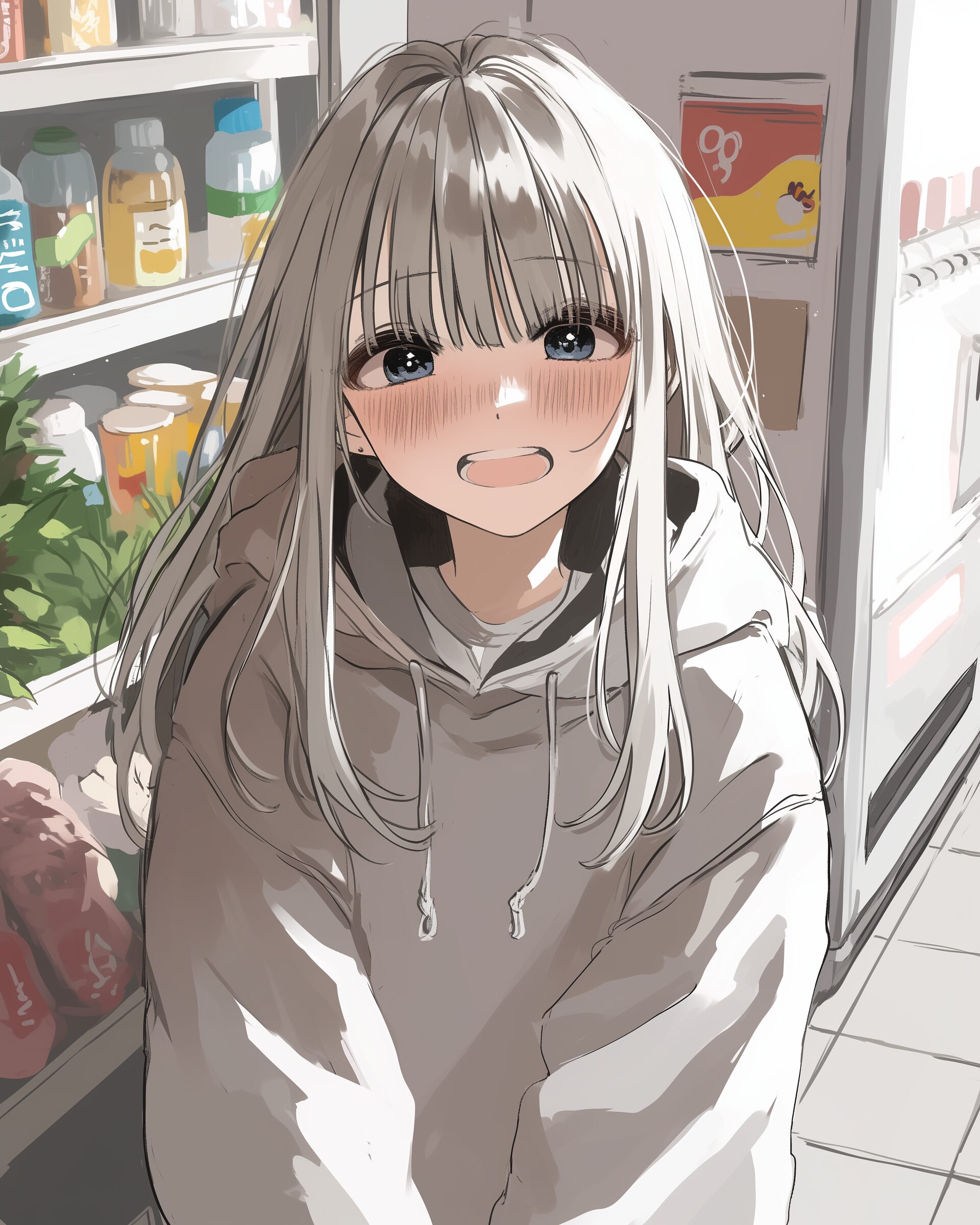 検索タグ:イラスト、ファッション、キャラクター、女性、女、女の子、女子、女の人、アニメ、漫画、マンガ、美人、美女、若い、かわいい、可愛い、カワイイ、人物、顔、美しい、綺麗、きれい、キレイ、アート、お洒落、挿絵、インスタ、Instagram、AI生成画像、fashion、コピースペース、銀髪、パーカー女子、コンビニ、待ち合わせ、お店、店舗