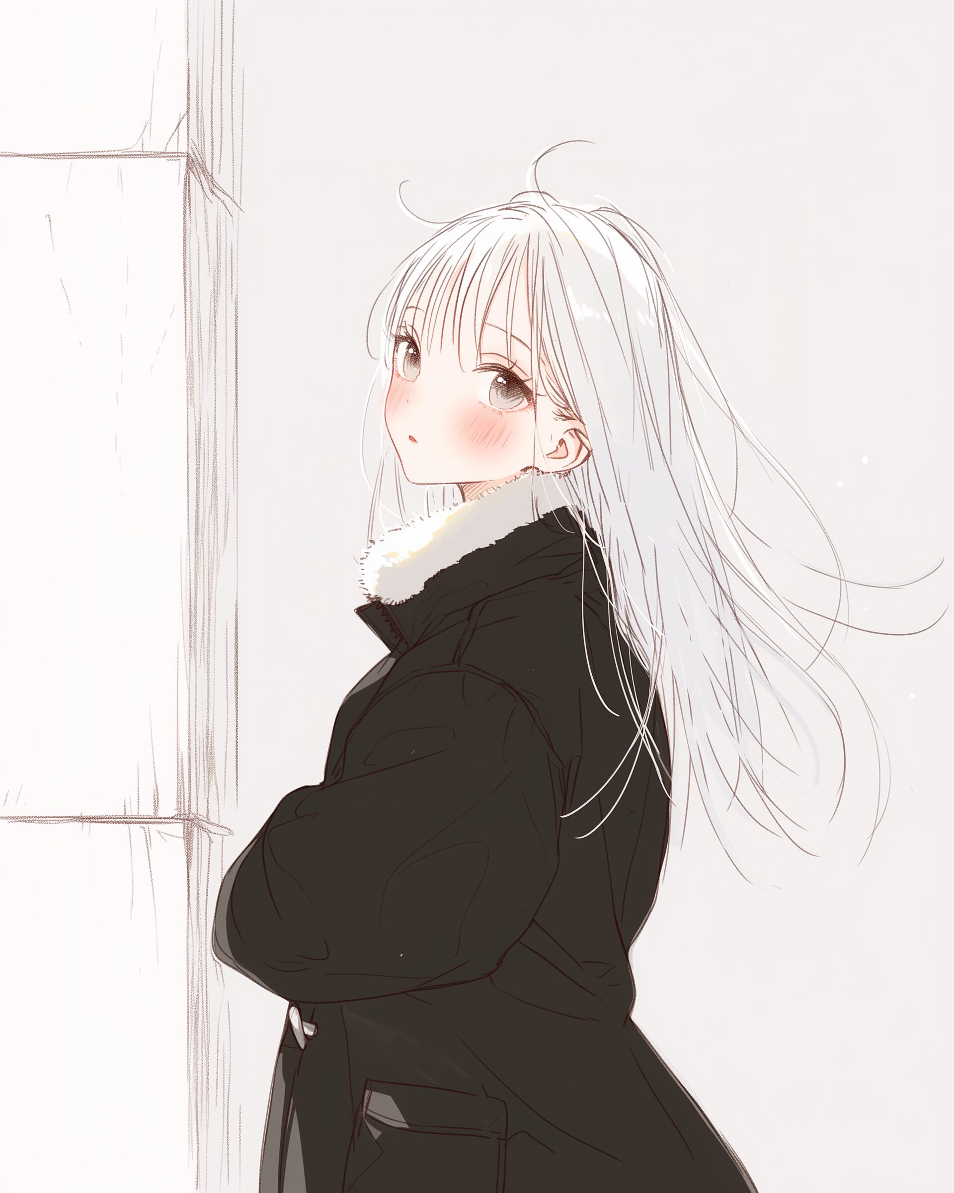 検索タグ:イラスト、ファッション、キャラクター、女性、女、女の子、女子、女の人、アニメ、漫画、マンガ、美人、美女、若い、かわいい、可愛い、カワイイ、人物、顔、美しい、綺麗、きれい、キレイ、アート、お洒落、挿絵、インスタ、Instagram、AI生成画像、fashion、コピースペース、銀髪、笑顔、パーカー女子、コート、冬服