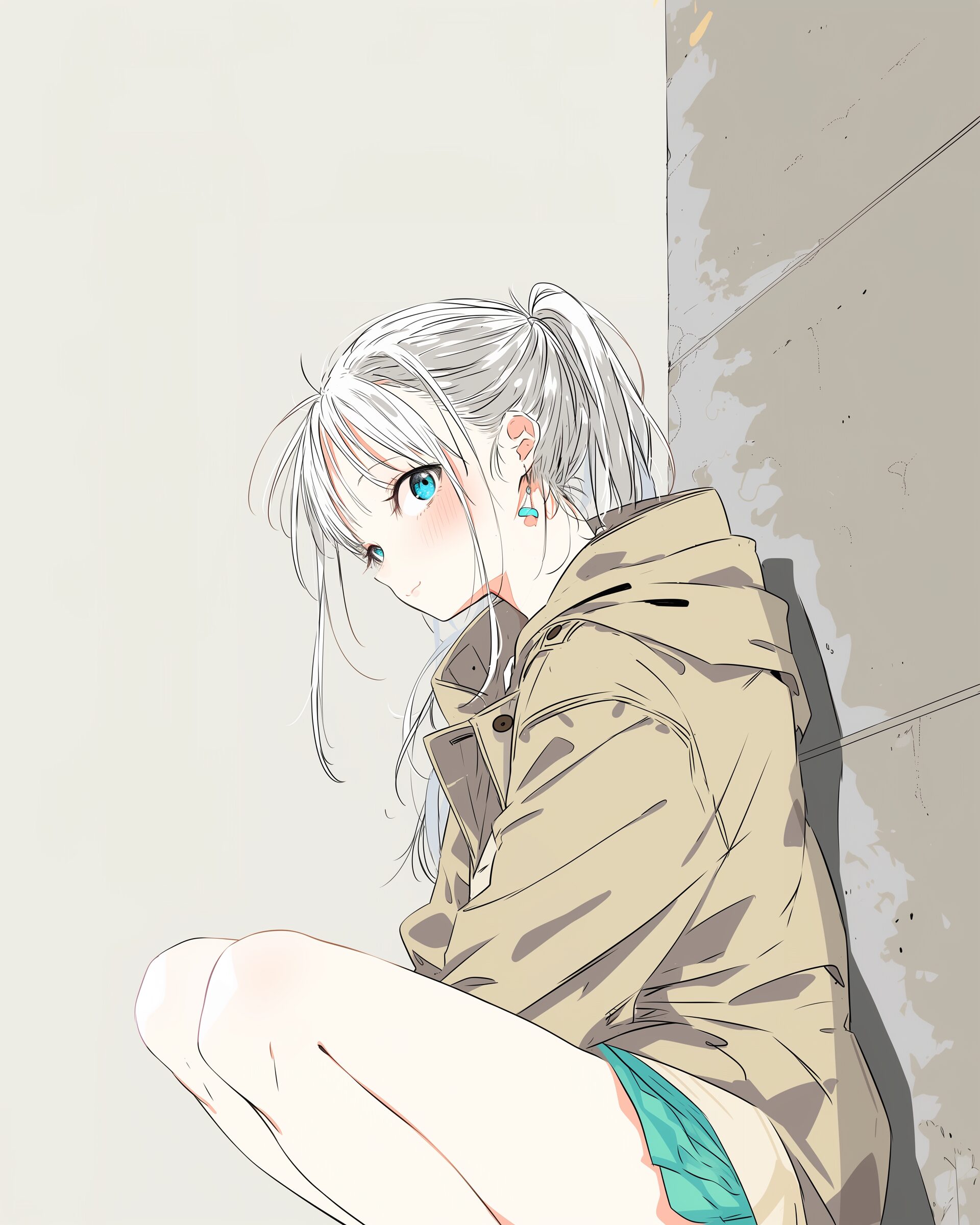 検索タグ:イラスト、ファッション、キャラクター、女性、女、女の子、女子、女の人、アニメ、漫画、マンガ、美人、美女、若い、かわいい、可愛い、カワイイ、人物、顔、美しい、綺麗、きれい、キレイ、アート、お洒落、挿絵、インスタ、Instagram、AI生成画像、fashion、コピースペース、銀髪、笑顔、パーカー女子、コート、冬服