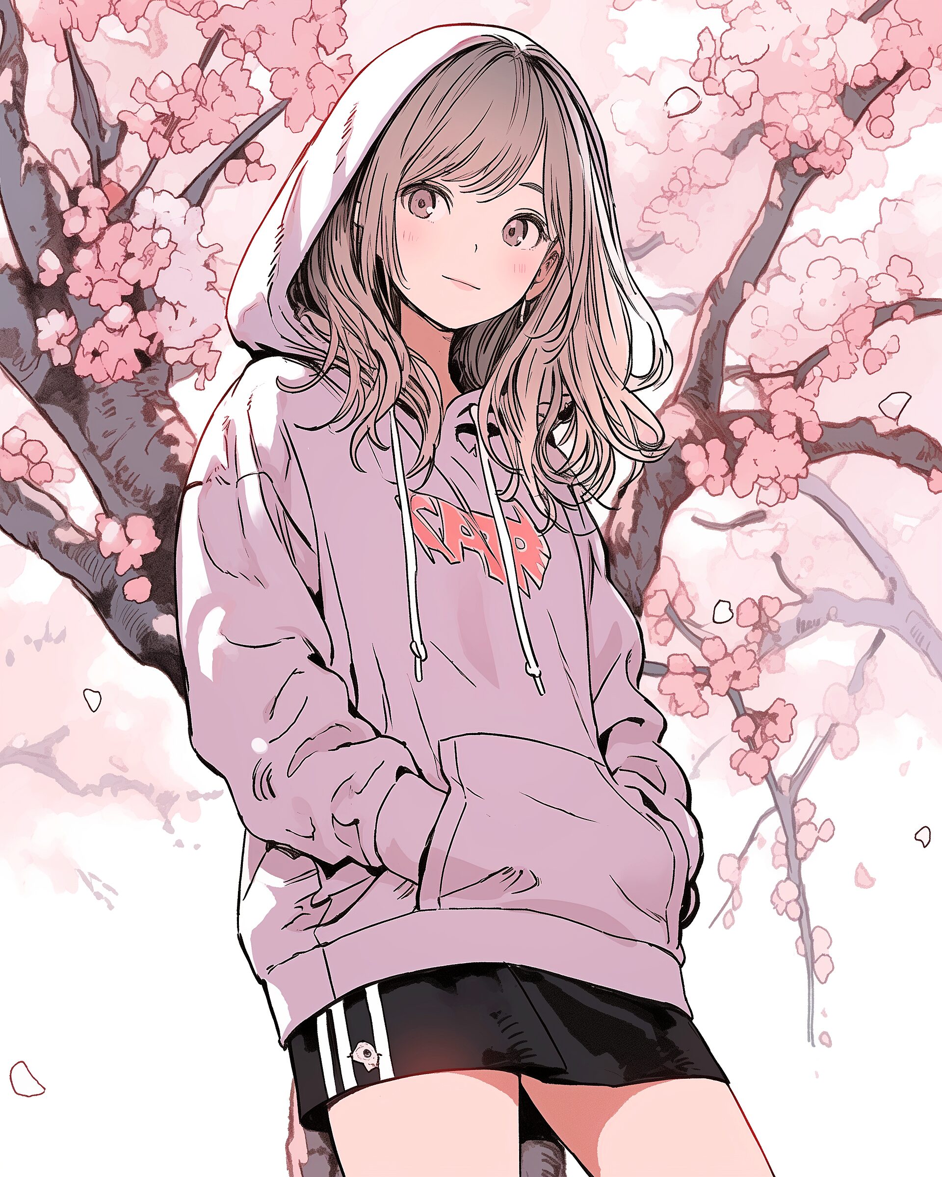 検索タグ:イラスト、ファッション、キャラクター、女性、女、女の子、女子、女の人、アニメ、漫画、マンガ、美人、美女、若い、かわいい、可愛い、カワイイ、人物、顔、美しい、綺麗、きれい、キレイ、アート、洋服、お洒落、パーカー女子、パーカー、桜、さくら、サクラ、ピンク、女子高生、JK