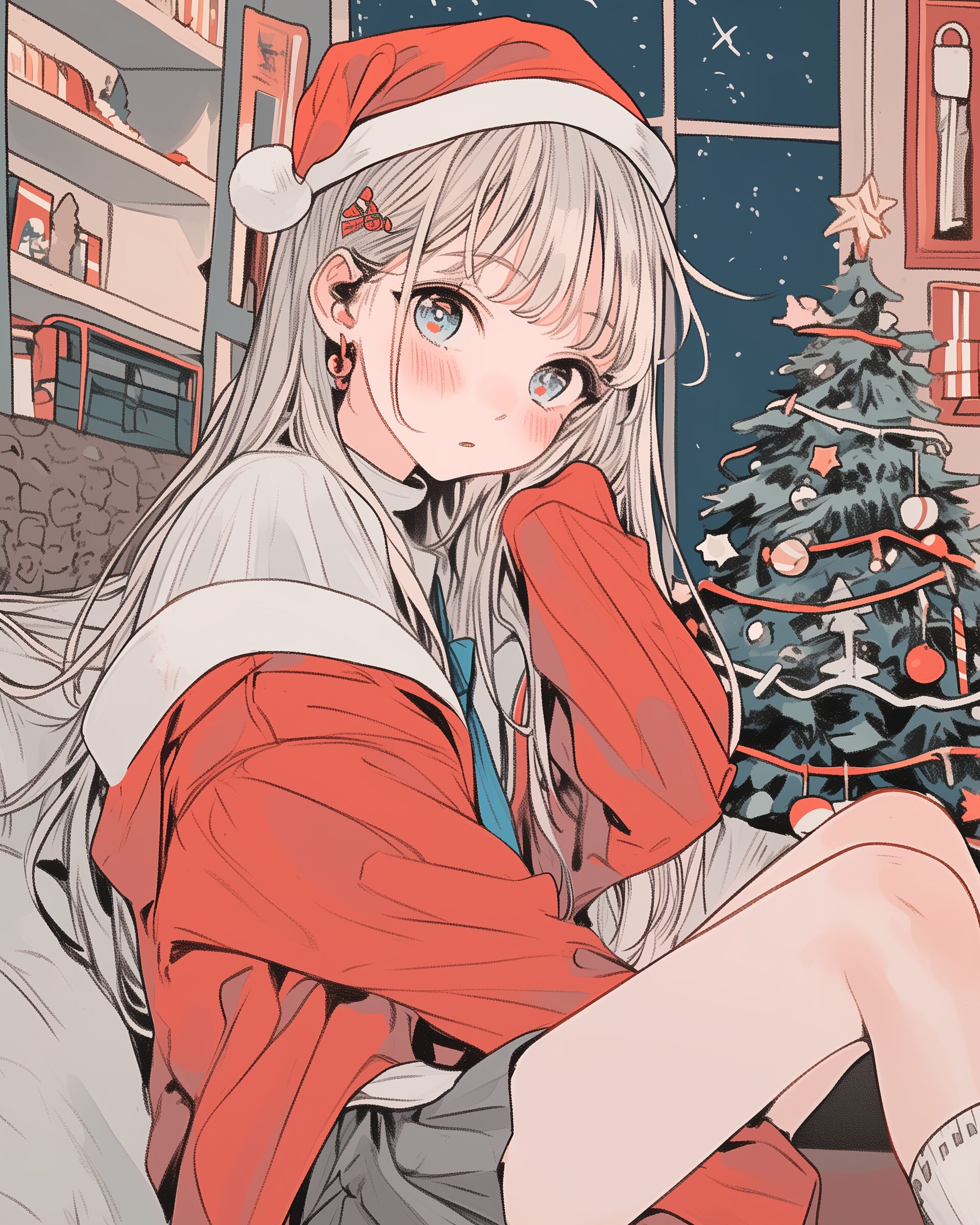 検索タグ:イラスト、ファッション、キャラクター、女性、女、女の子、女子、女の人、アニメ、漫画、マンガ、美人、美女、若い、かわいい、可愛い、カワイイ、人物、顔、美しい、綺麗、きれい、キレイ、アート、お洒落、挿絵、インスタ、Instagram、AI生成画像、fashion、コピースペース、おしゃれ、オシャレ、秋、秋服、冬服、パーカー女子、ぱっつん、パッツン、冬、サンタクロース、サンタコス、笑顔、クリスマス、Christmas、12月、クリスマスイブ