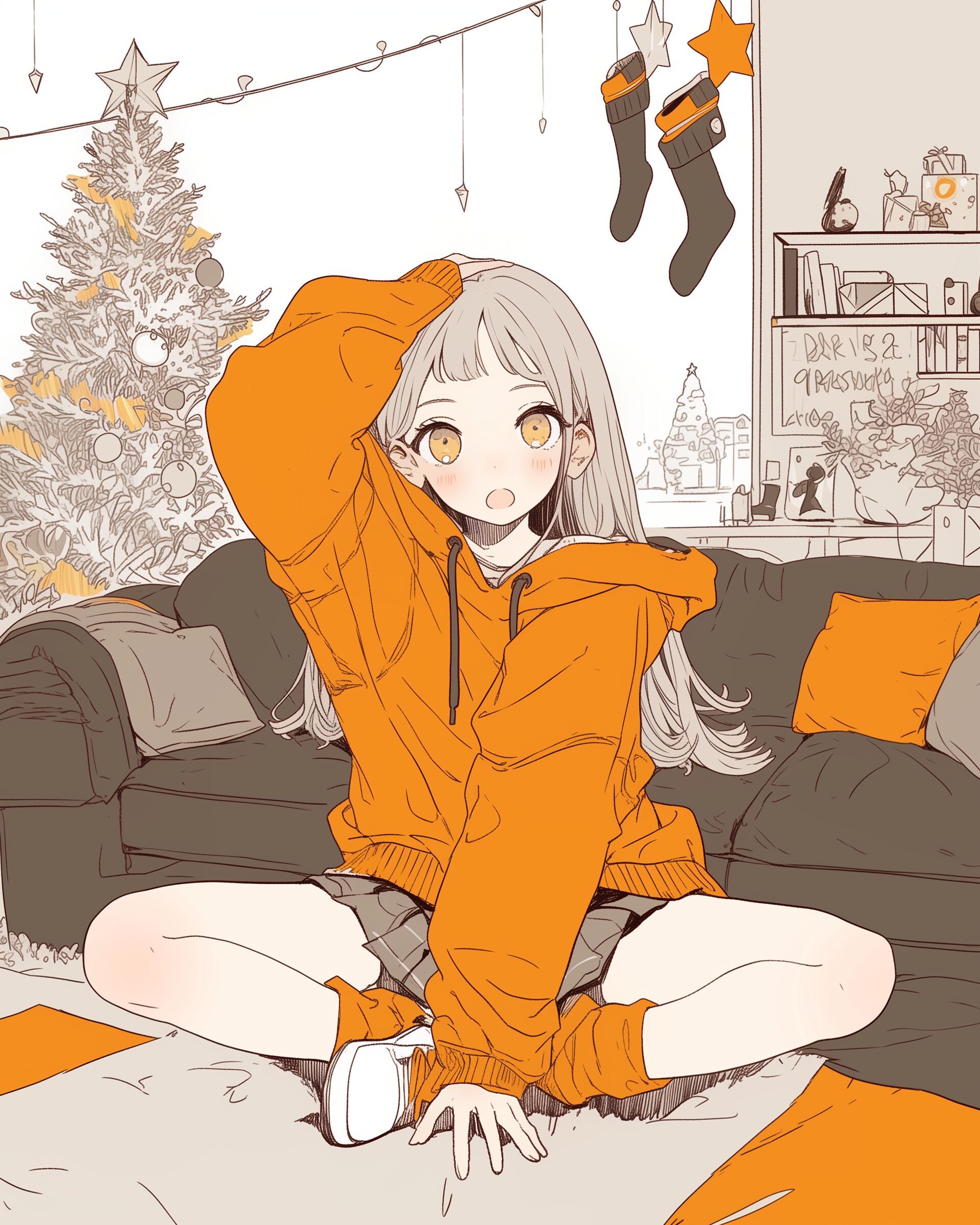 検索タグ:イラスト、ファッション、キャラクター、女性、女、女の子、女子、女の人、アニメ、漫画、マンガ、美人、美女、若い、かわいい、可愛い、カワイイ、人物、顔、美しい、綺麗、きれい、キレイ、アート、お洒落、挿絵、インスタ、Instagram、AI生成画像、fashion、コピースペース、おしゃれ、オシャレ、秋、秋服、冬服、パーカー女子、ぱっつん、パッツン、冬、サンタクロース、サンタコス、笑顔、クリスマス、Christmas、12月、クリスマスイブ