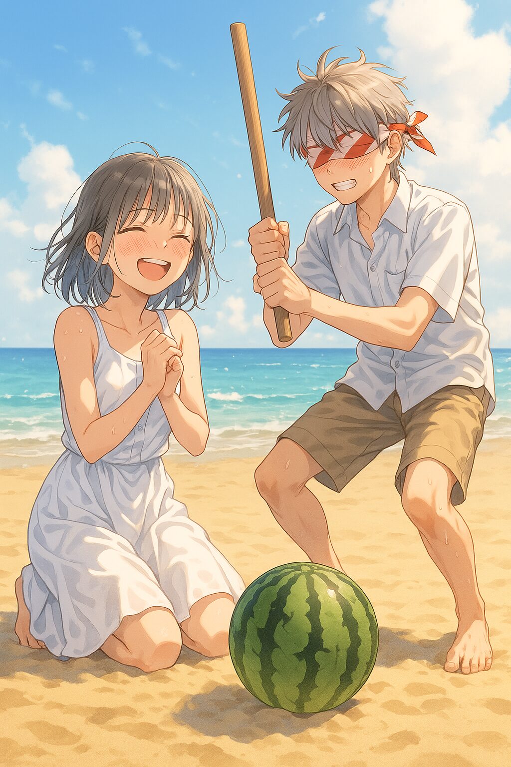 検索タグ:イラスト、ファッション、キャラクター、女性、女、女の子、女子、女の人、アニメ、漫画、マンガ、美人、美女、若い、かわいい、可愛い、カワイイ、人物、顔、美しい、綺麗、きれい、キレイ、アート、お洒落、挿絵、インスタ、Instagram、AI生成画像、fashion、コピースペース、カップル、恋人、男性、男、男の人、恋愛、恋、エモい、夏、夏休み、イベント、スイカ、スイカ割り、すいか、西瓜、笑顔、海、ビーチ、青空、晴れ、サマー、目隠し