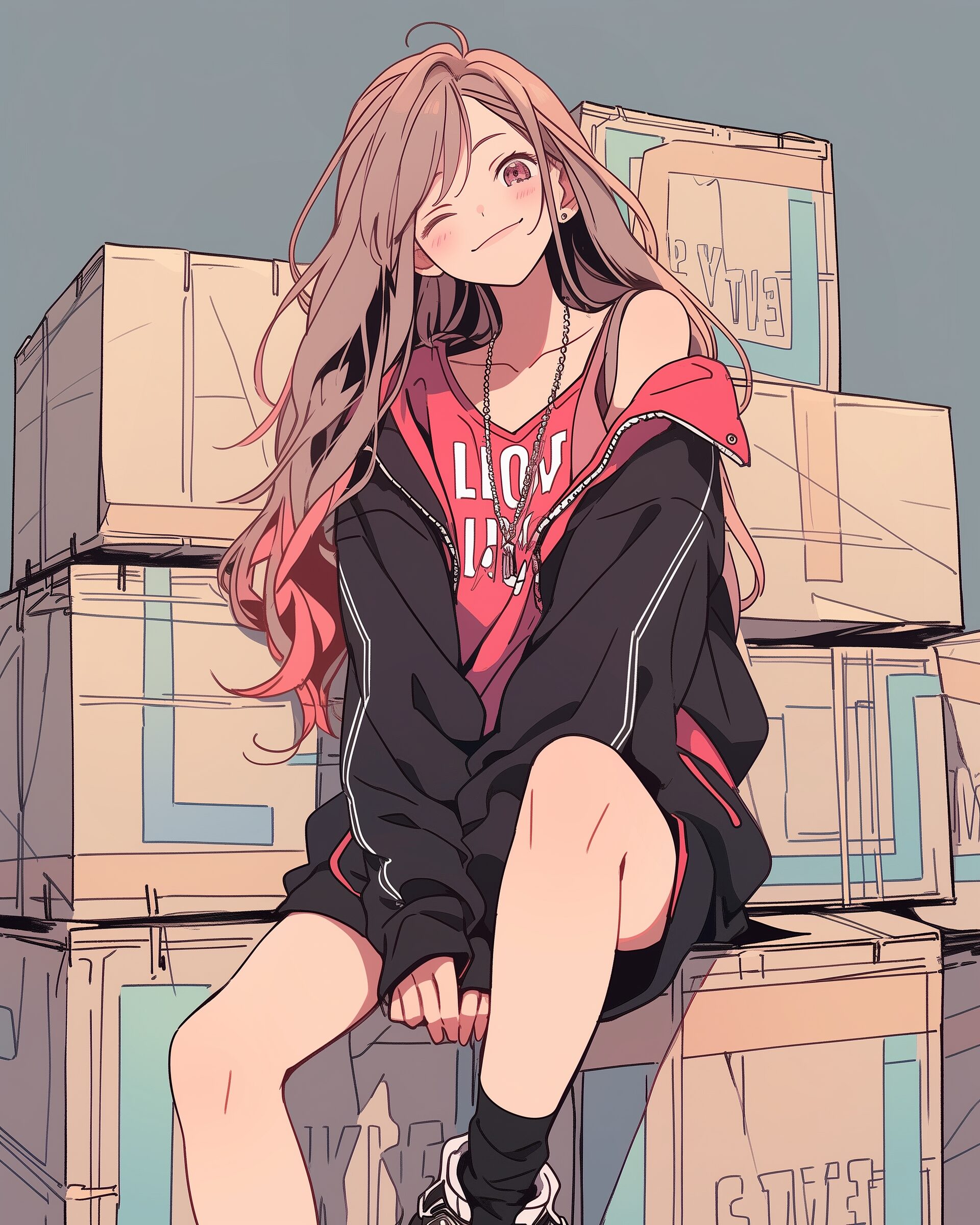 検索タグ:イラスト、ファッション、キャラクター、女性、女、女の子、女子、女の人、アニメ、漫画、マンガ、美人、美女、若い、かわいい、可愛い、カワイイ、人物、顔、美しい、綺麗、きれい、キレイ、アート、お洒落、挿絵、インスタ、Instagram、AI生成画像、fashion、コピースペース、おしゃれ、オシャレ、秋、秋服、パーカー女子、ストリートファッション、スポーティー、元気、赤、レッド、RED、笑顔